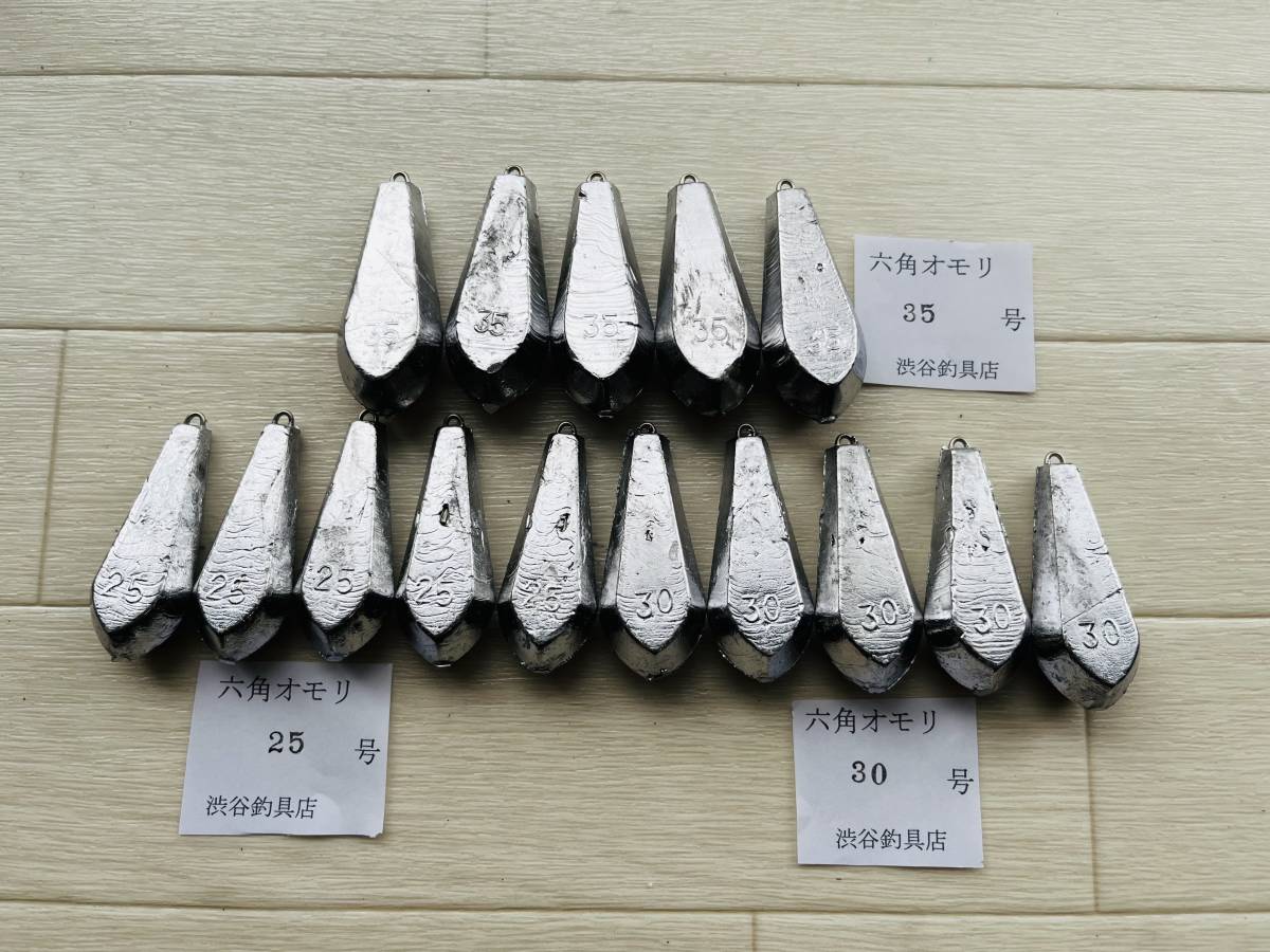手作り六角オモリ25号5個30号5個35号5個、25号1個93g30号1個113g35号1個134g総重量1700gになります。発送はゆうパケットポスト、ポスト投函になります。当店で1人で手作りしてますので