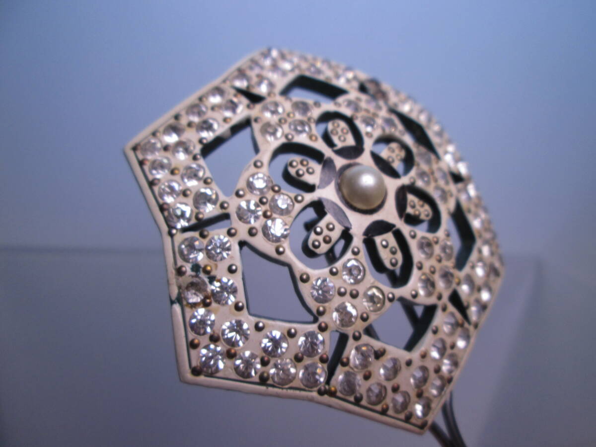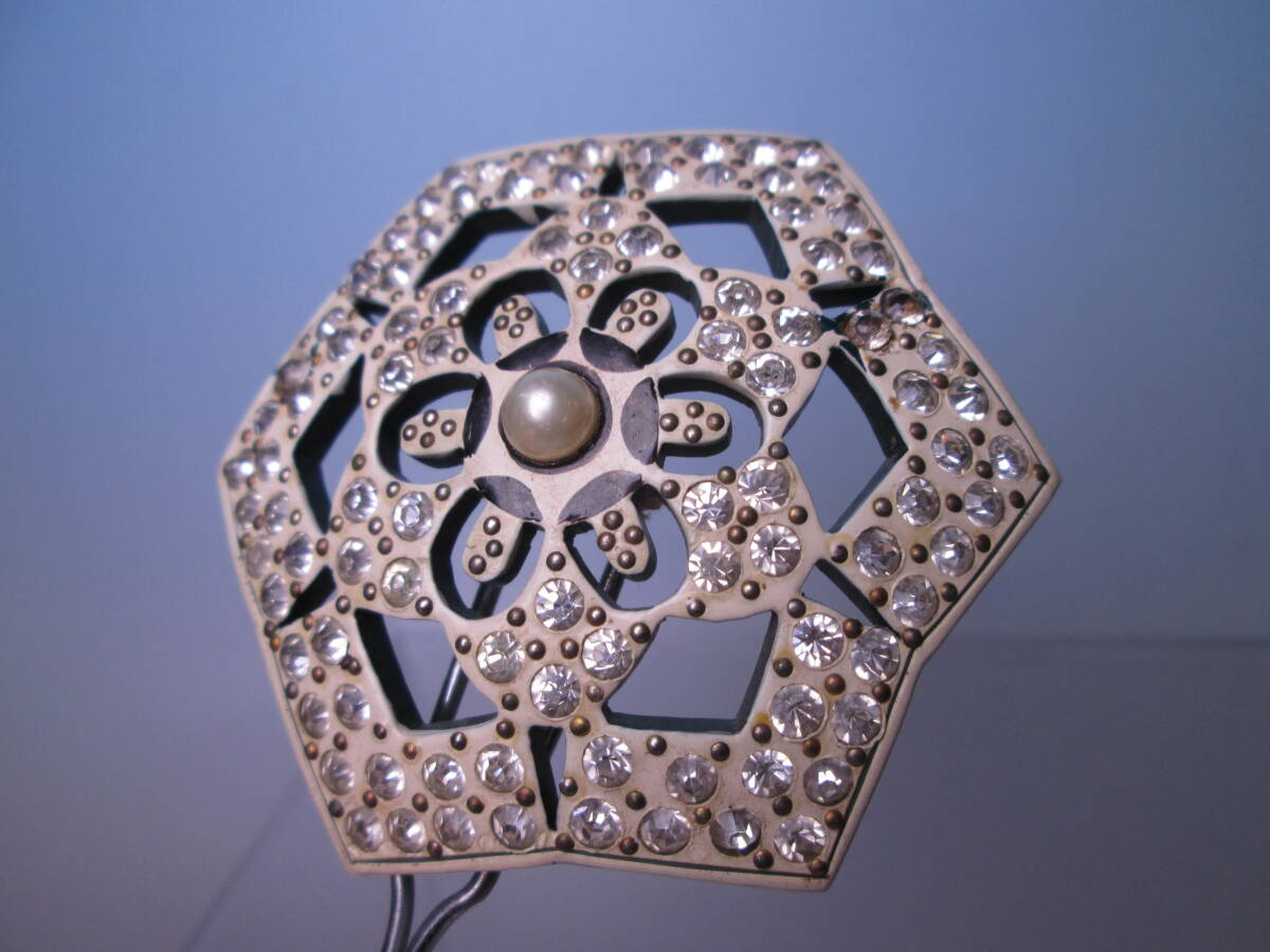 【江月】アンティーク・樹脂製 ラインストーン/パール飾りのかんざし F