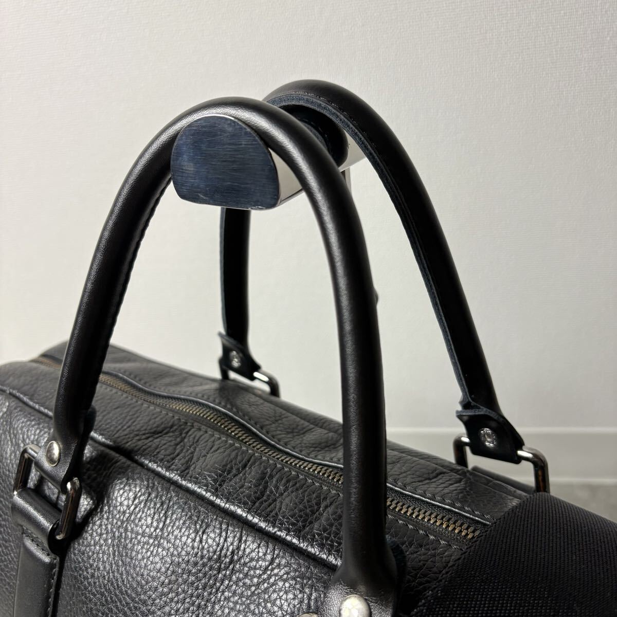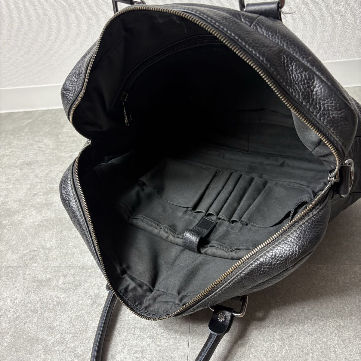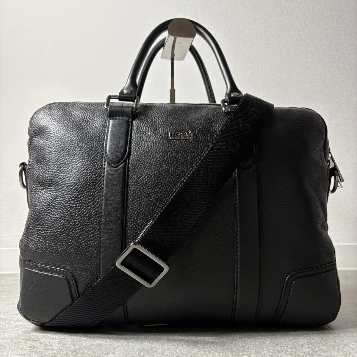 現行/美品◎ HUGO BOSS ヒューゴボス シボ革 オールレザー 2way メンズ ビジネスバッグ ブリーフケース 斜め掛け A4+PC収納可 通勤 黒