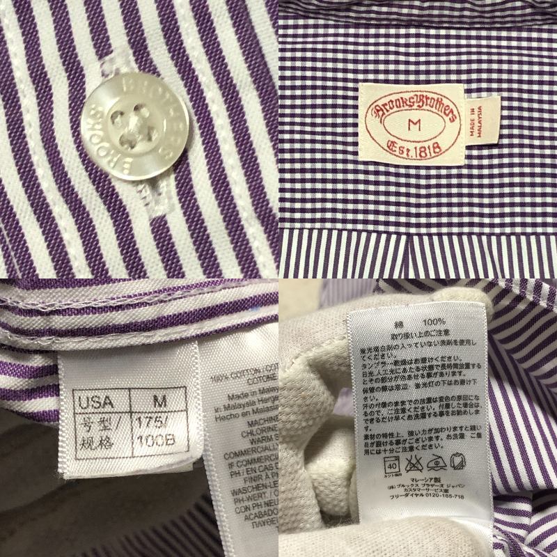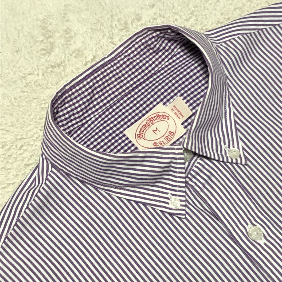 BROOKS BROTHERS ブルックスブラザーズ 長袖シャツ ドレスシャツ ワイシャツ ボタンダウン パープル ストライプ Mサイズ