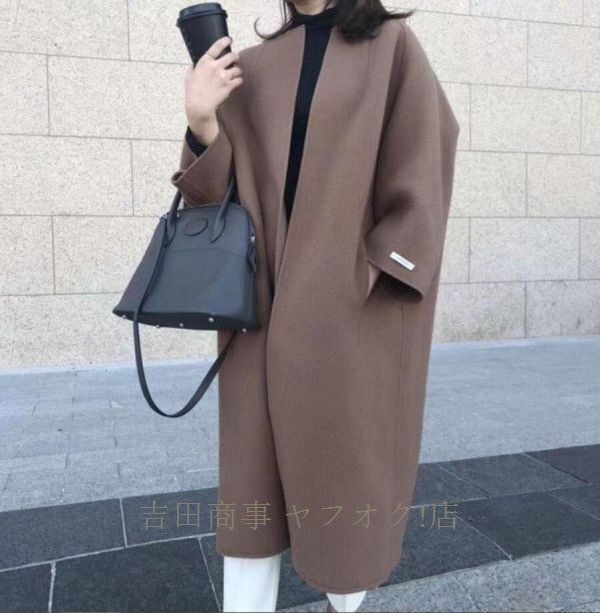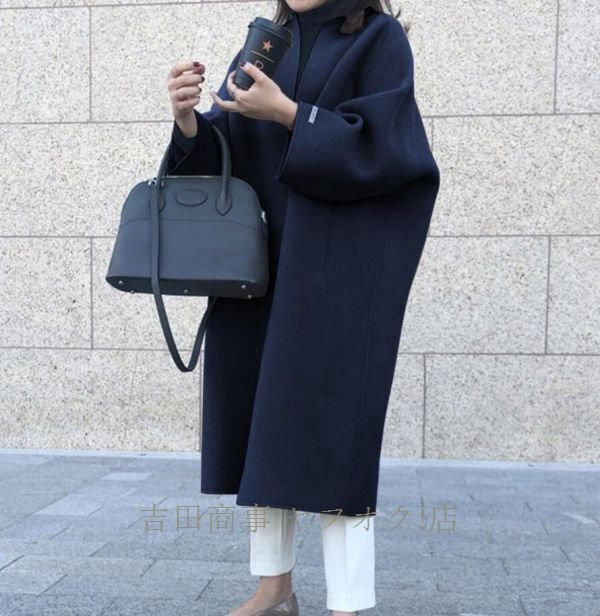 ☆新品 オシャレ ラシャコート ロングコート レディースアウター 気質 園行事 通勤 長袖 大きいサイズ 着痩せ チェスターコート/ネイビー
