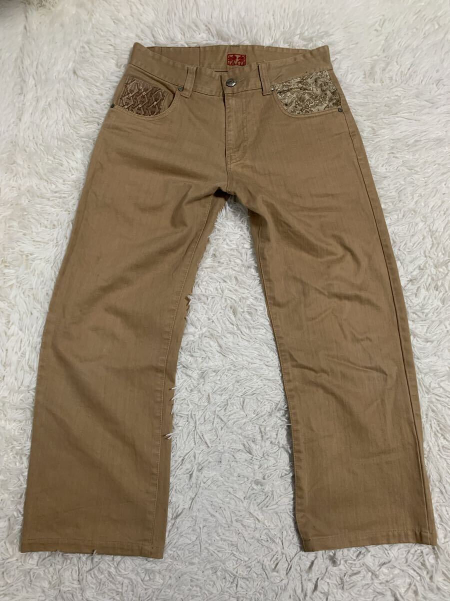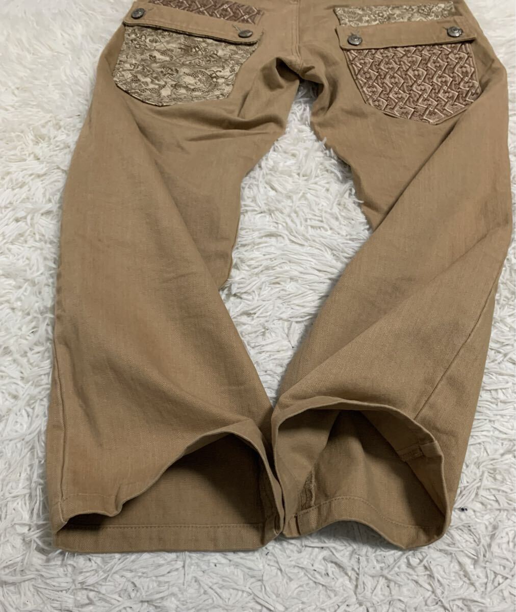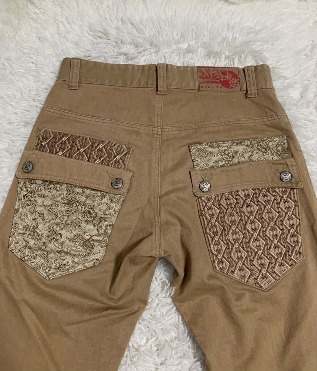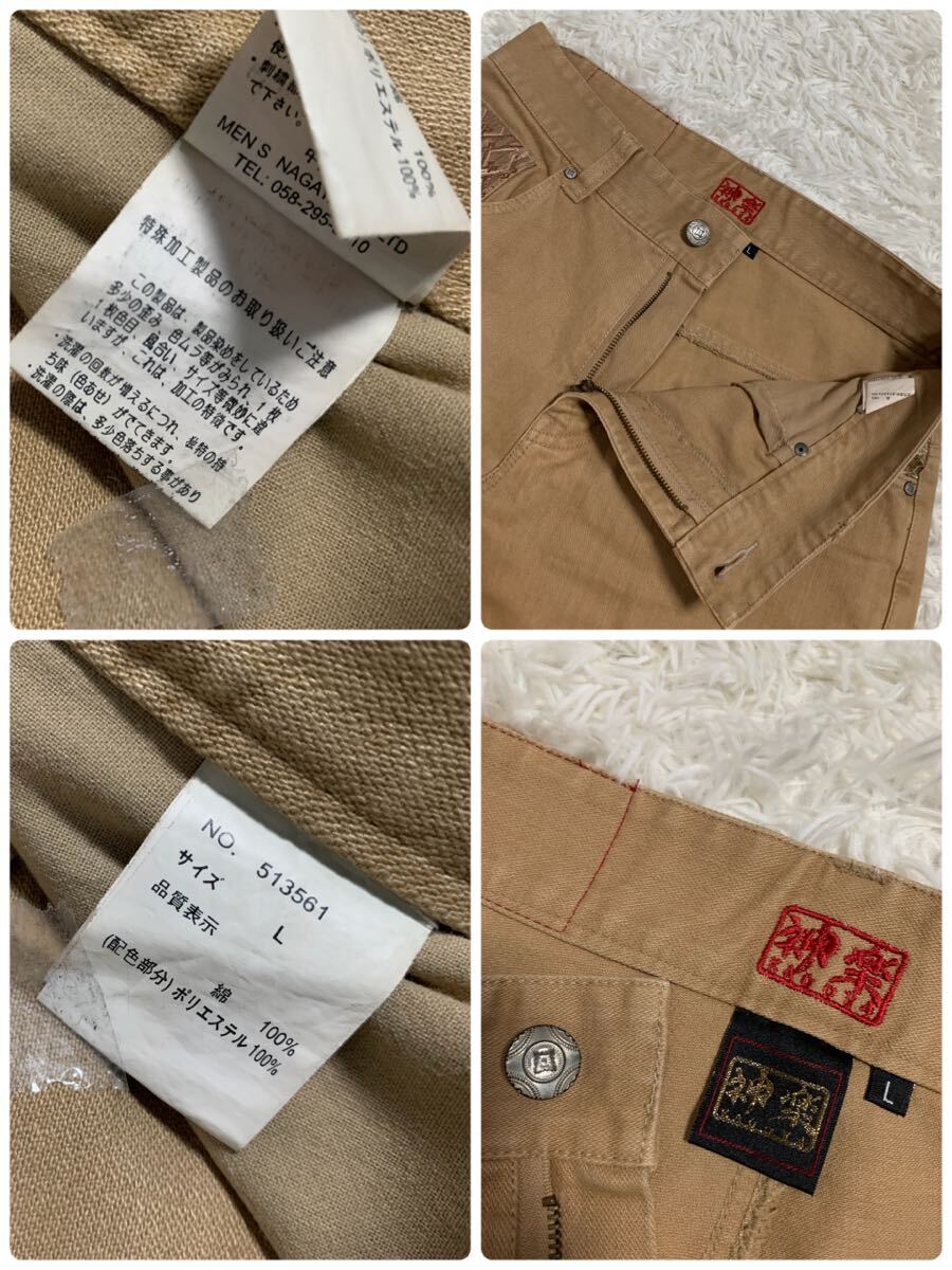 管理神楽 カグラ デニム ジーンズ 和柄 特殊加工 ベージュ Lサイズ 005