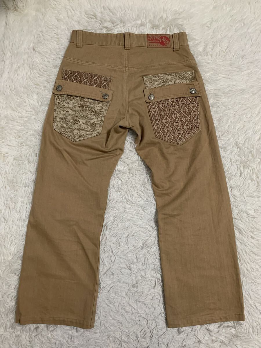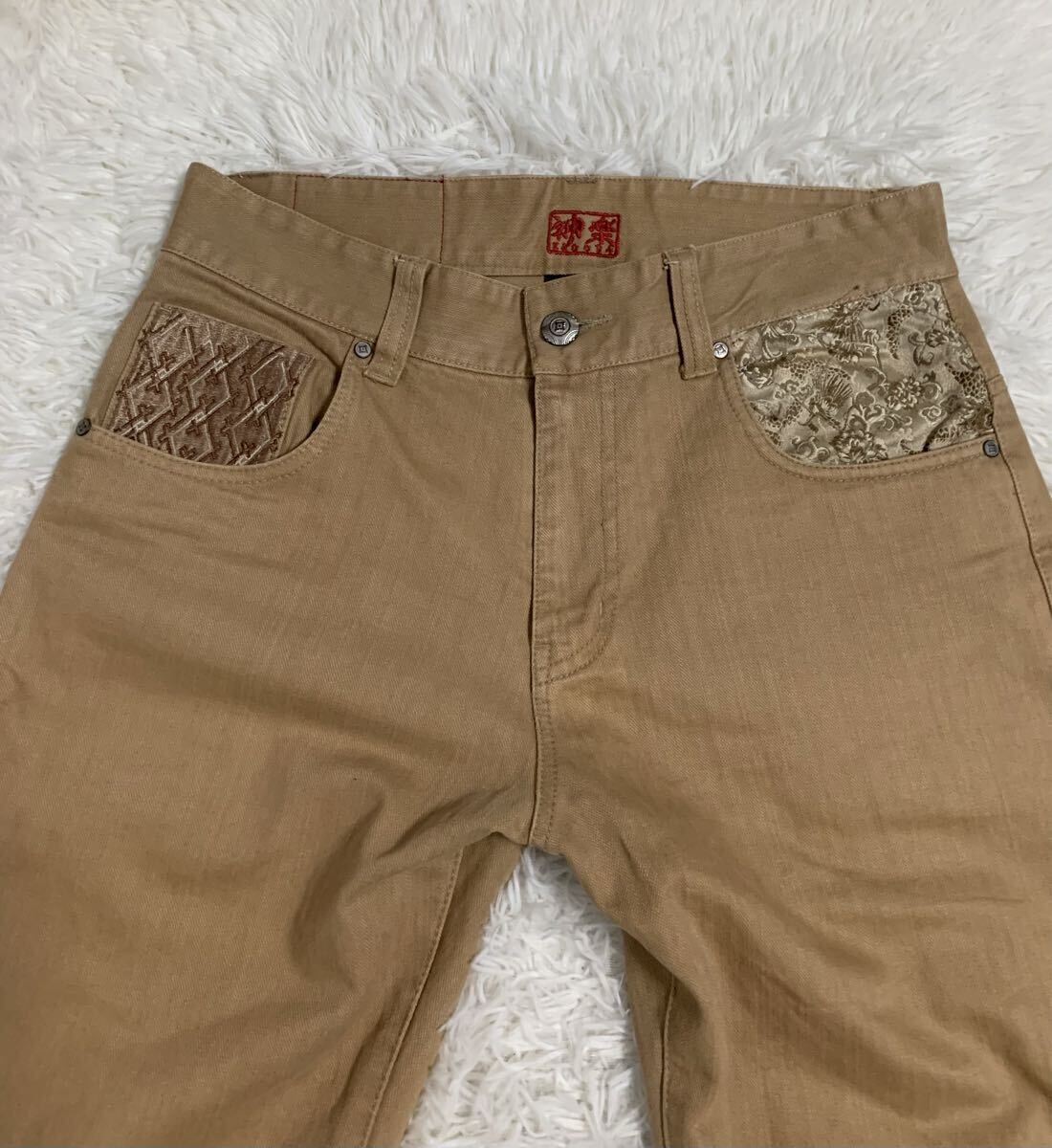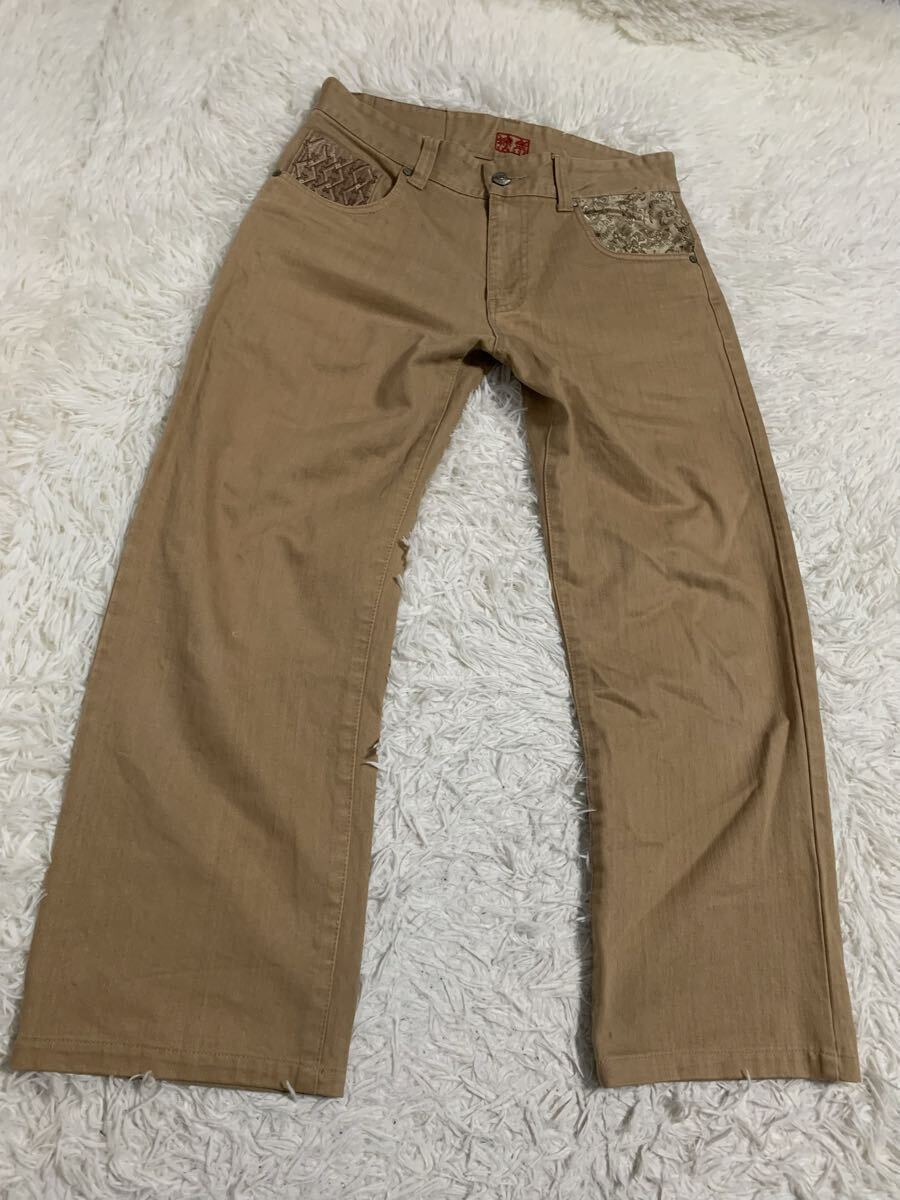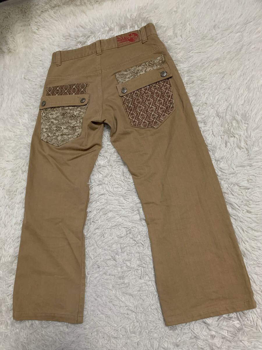 管理神楽 カグラ デニム ジーンズ 和柄 特殊加工 ベージュ Lサイズ 005