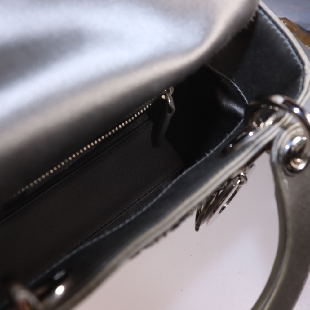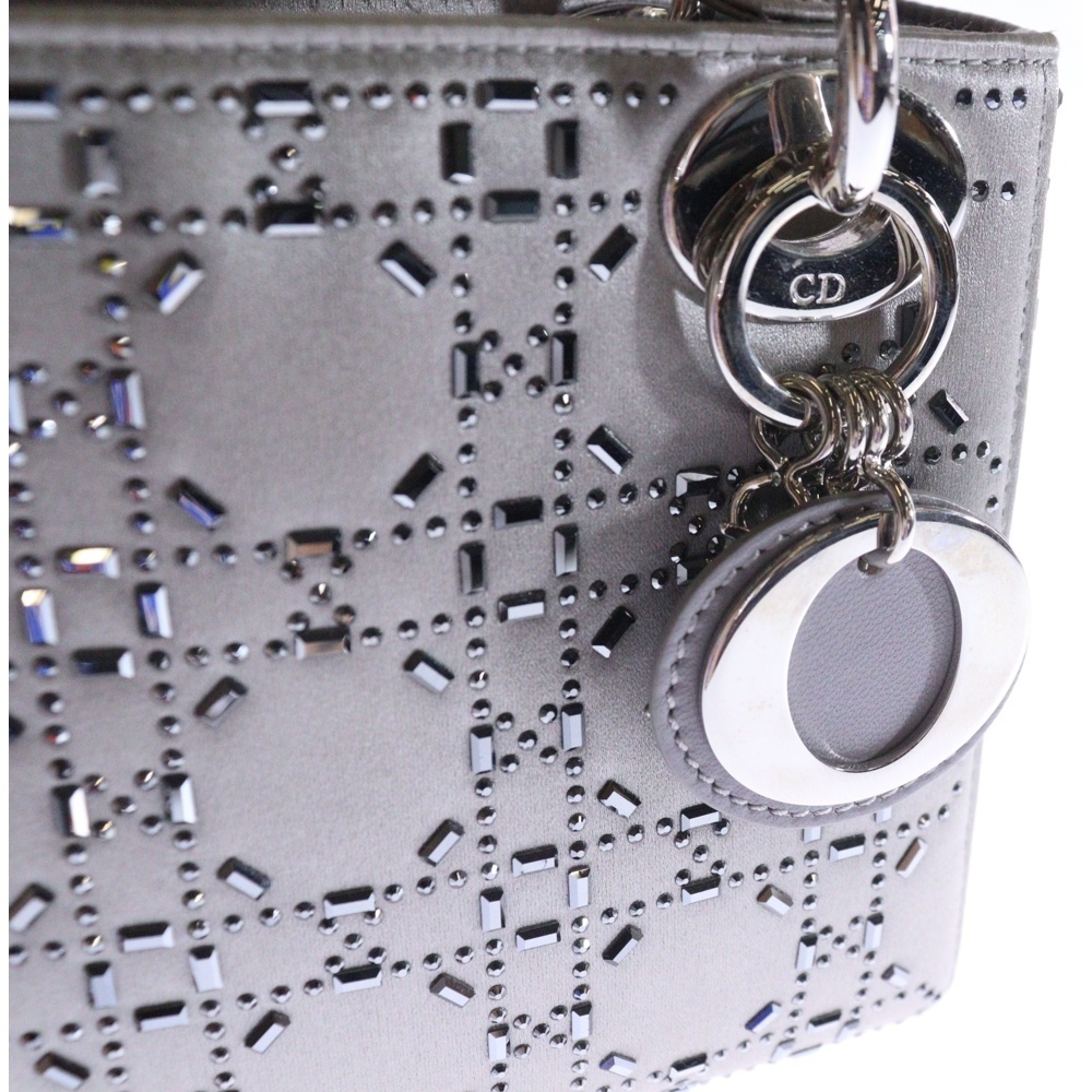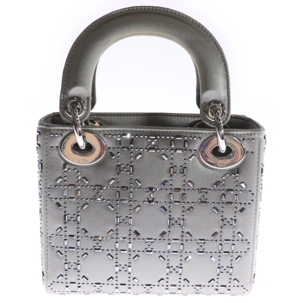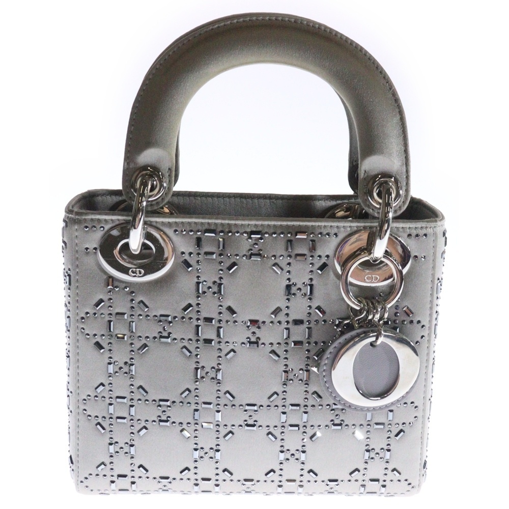 品名レディディオール ミニ サテン グレー ラインストーン 2wayハンドバッグ ショルダーバッグ