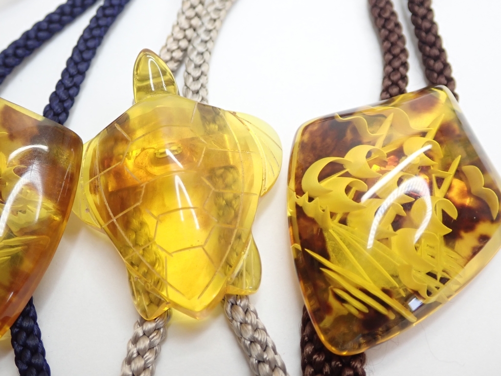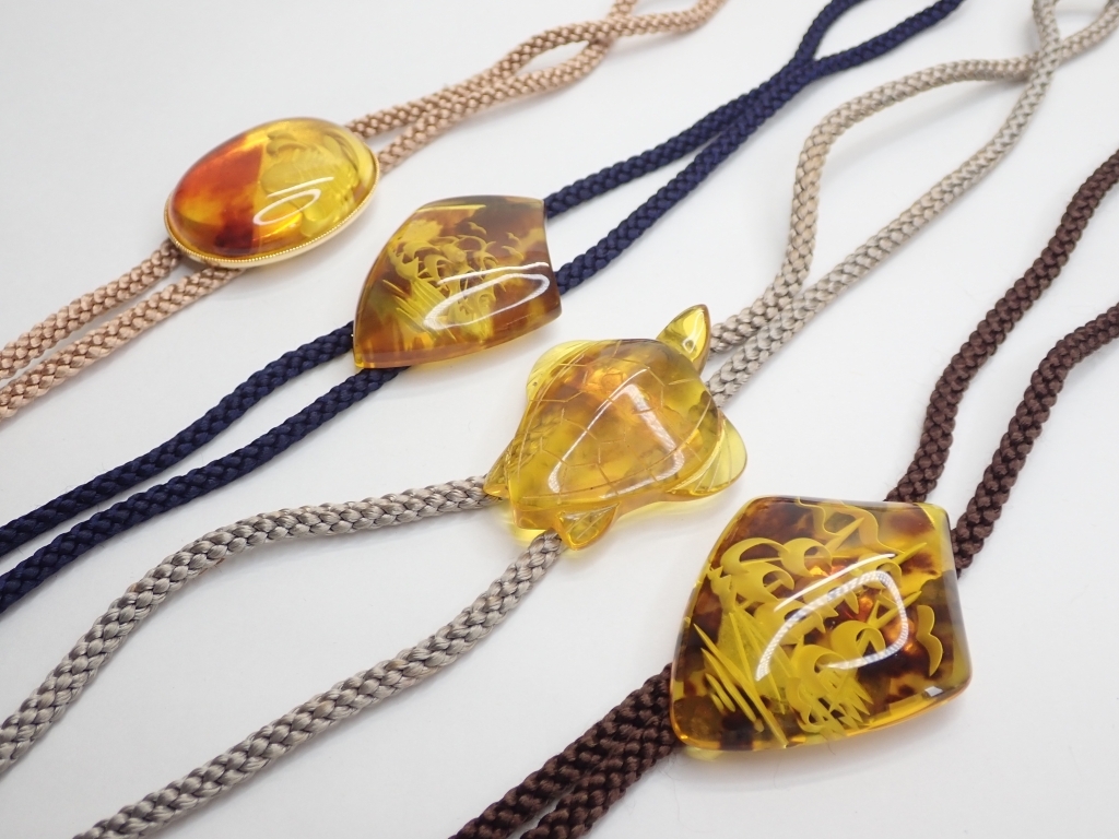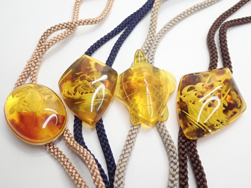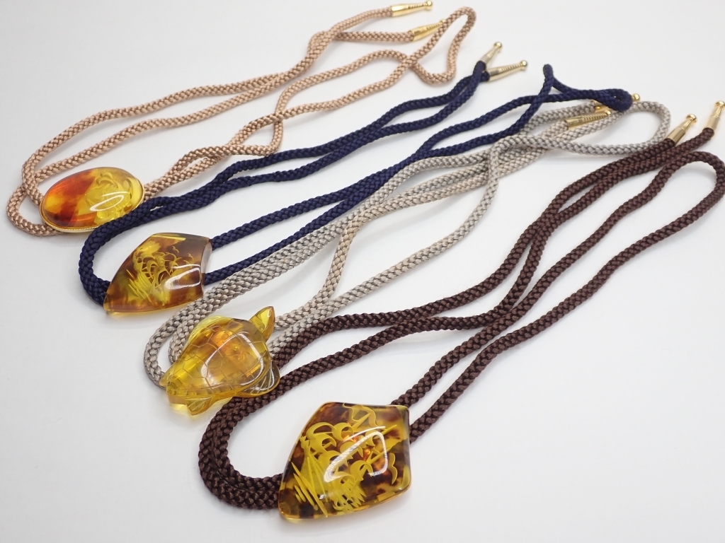 Q334 ループタイ 張りべっ甲 4点セット 55/54/55/58cm アクセサリー