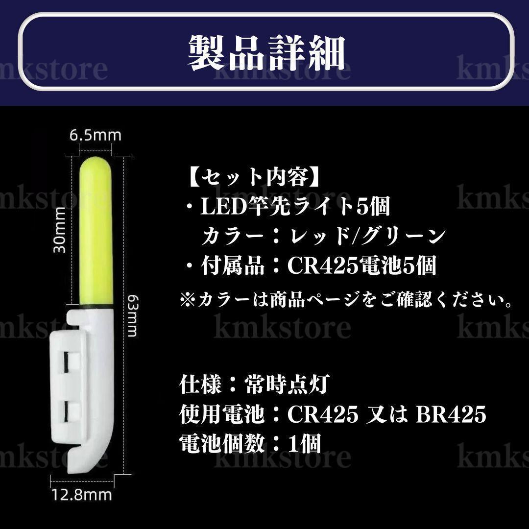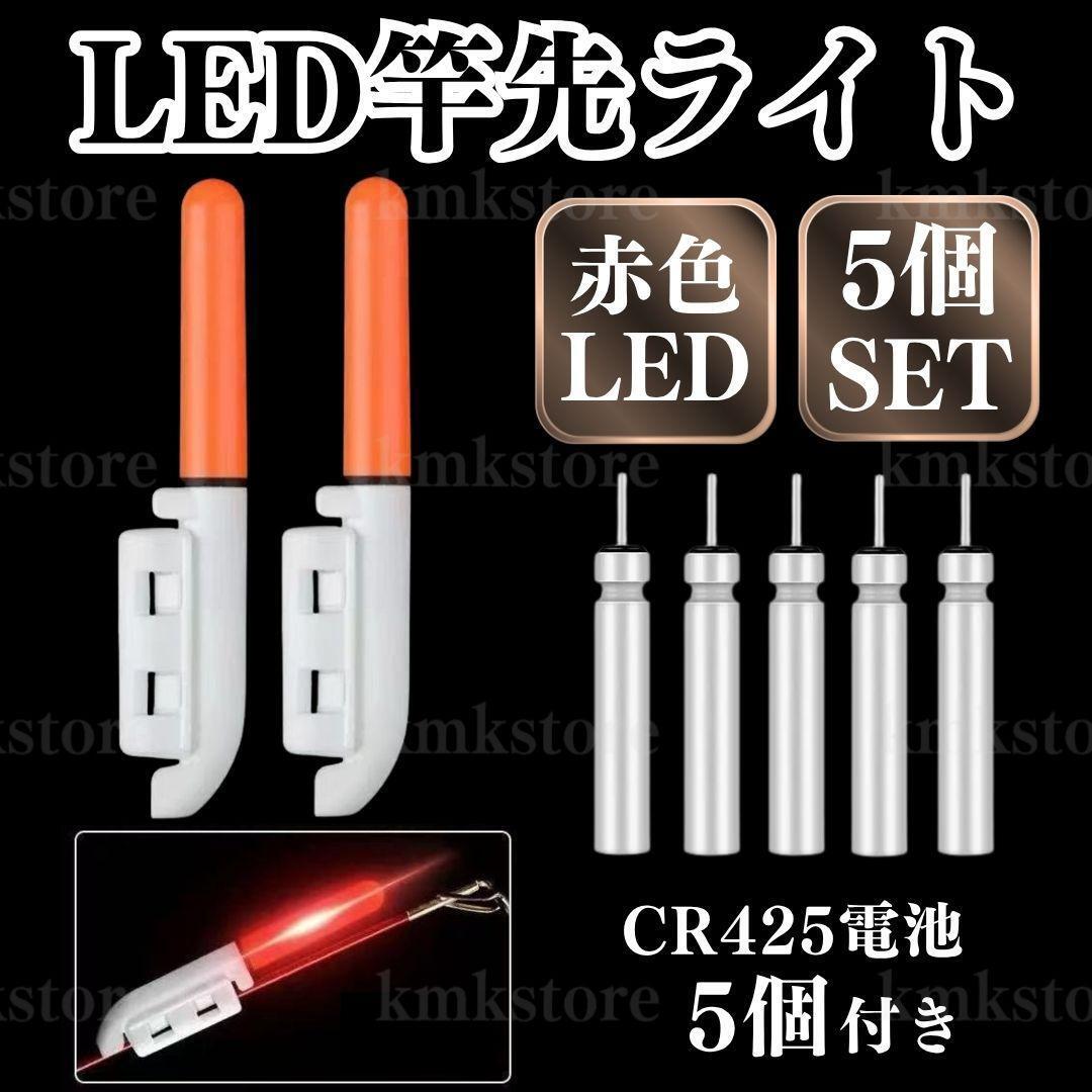 竿先ライト 穂先 5本 LED ケミカルライト デンケミ 夜釣り ヒットセンサー 電池 レッド 赤 CR425