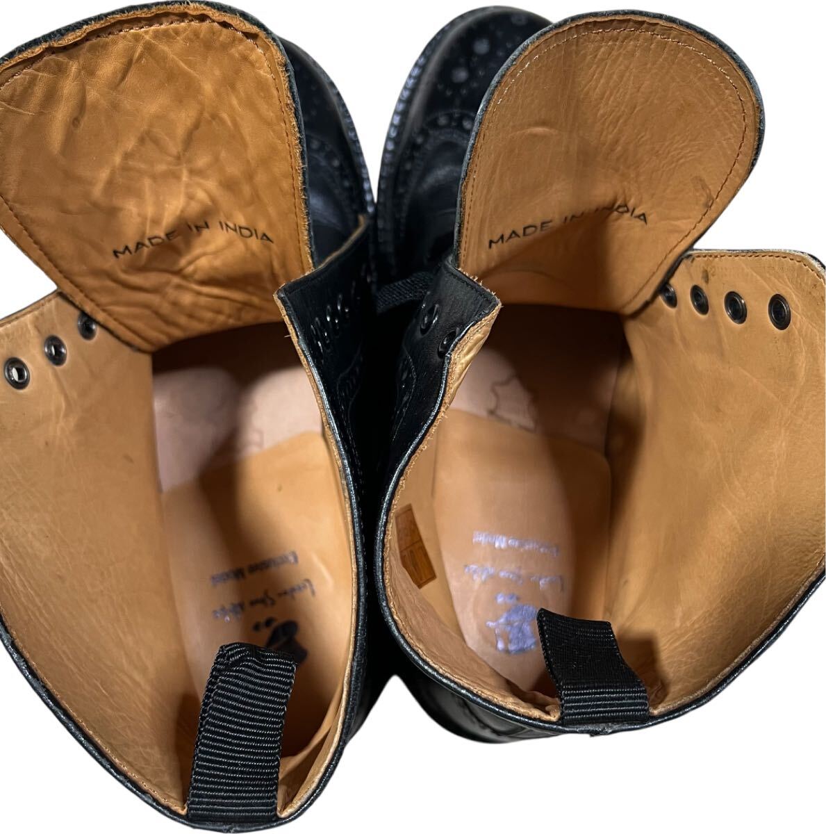 ● インド北部、靴作りの伝統が残るニューデリーで作 られた「London Shoe Make」のメダリオンブーツになります。 ダイナイトソールにグッドイヤーウエルト製法を用いた代々靴職人だった熟練工が一点一点、すべてハンドメイドで作り上げます。 その上でこの価格帯で売られてるのは世界でも珍しいと存じます。