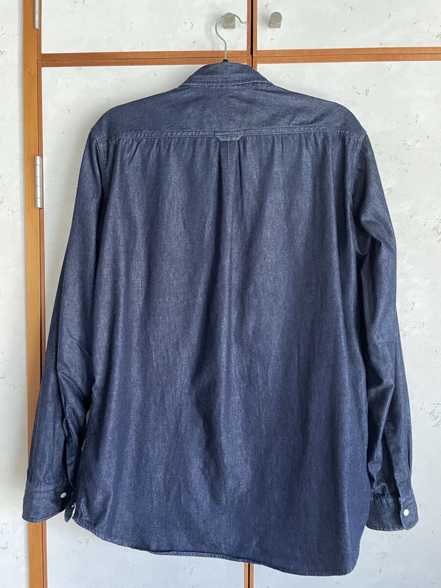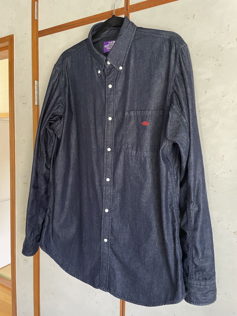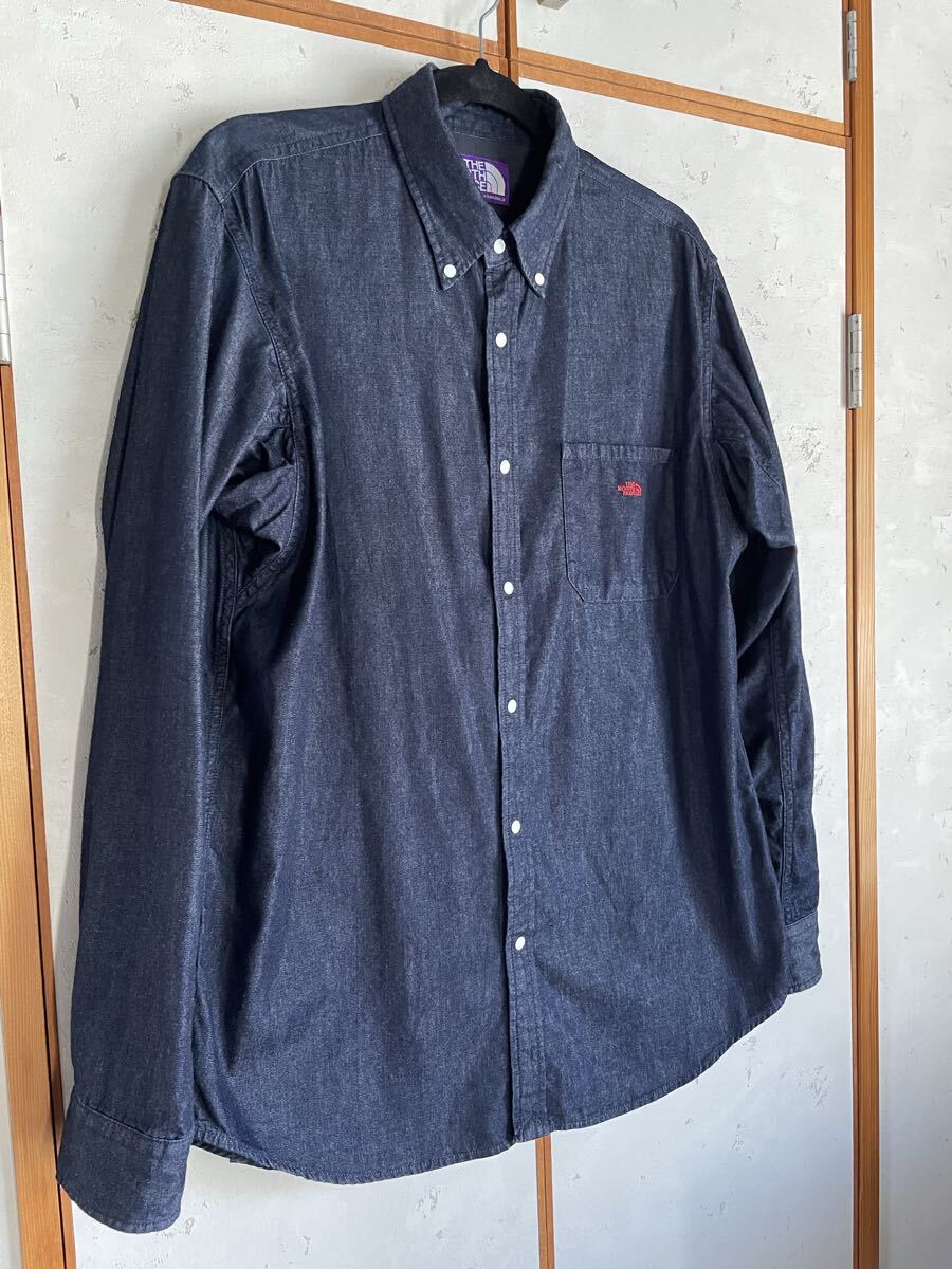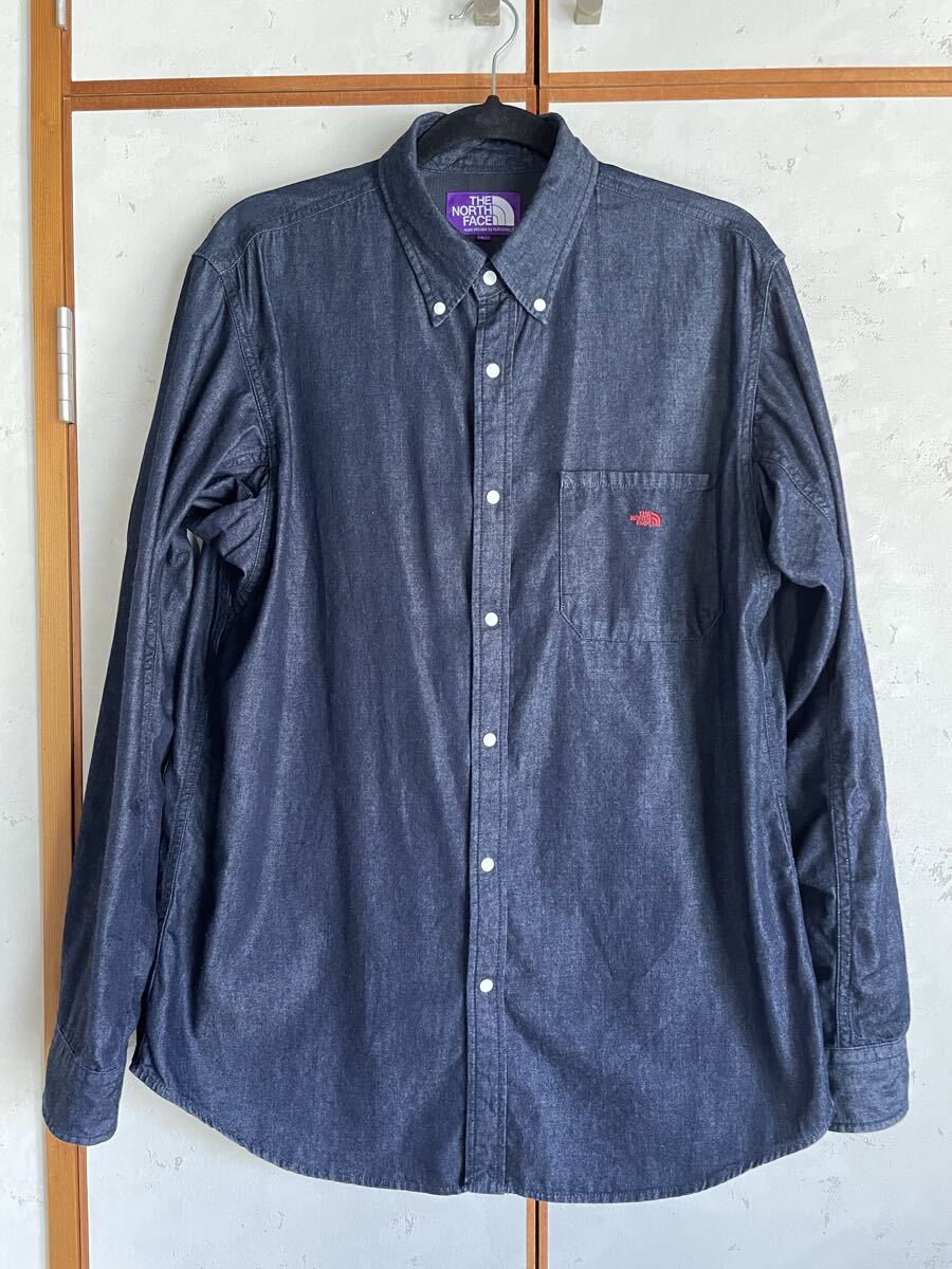 【デザイン】COOLMAXライトデニムを使用したボタンダウンシャツ。快適に着用できるよう、背ヨーク裏にはCOOLMAXメッシュを採用。胸にTNFのロゴ刺繍。衿腰にはTNFの刻印ドットを使用。腕の動きを意識したピボットスリーブデザインです。