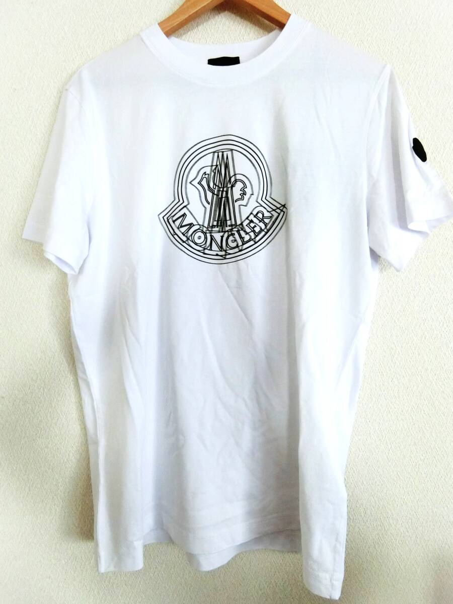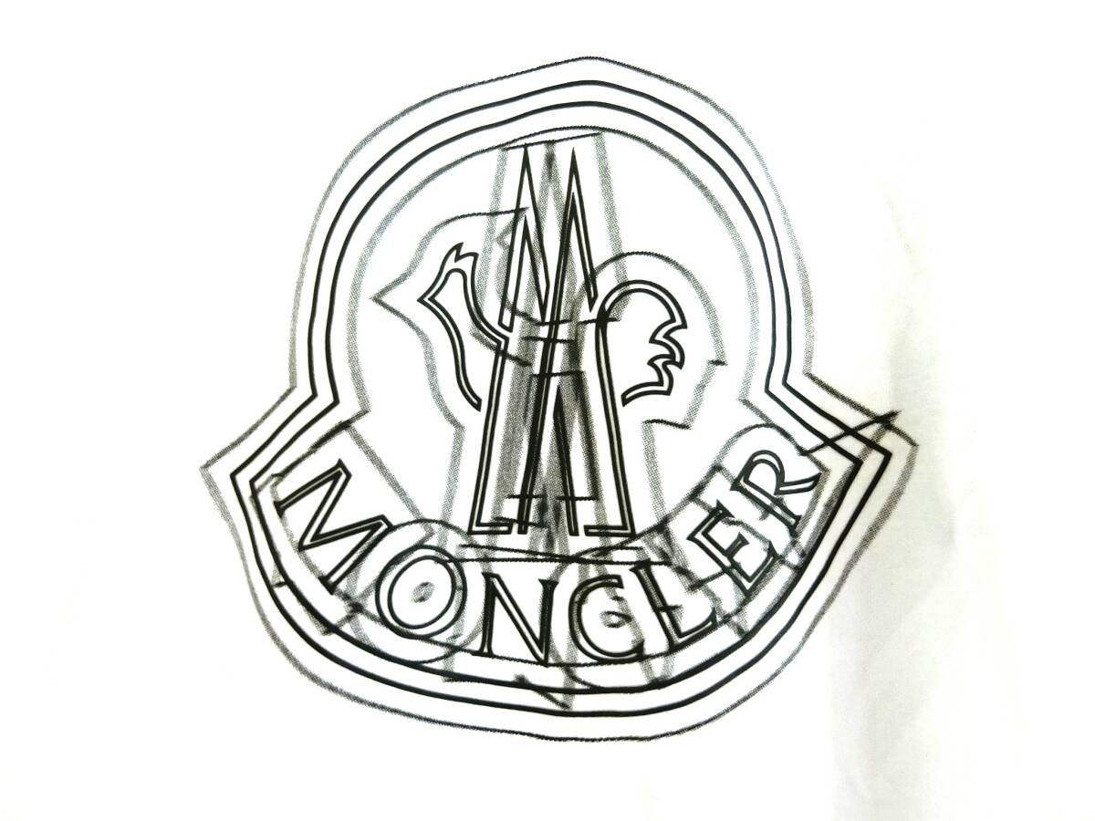 【新品 タグ付】MONCLER Tシャツ メンズ 半袖 クルーネック ホワイト カットソー シリコン ロゴ ワッペン フェイドアウトロゴモチーフ M