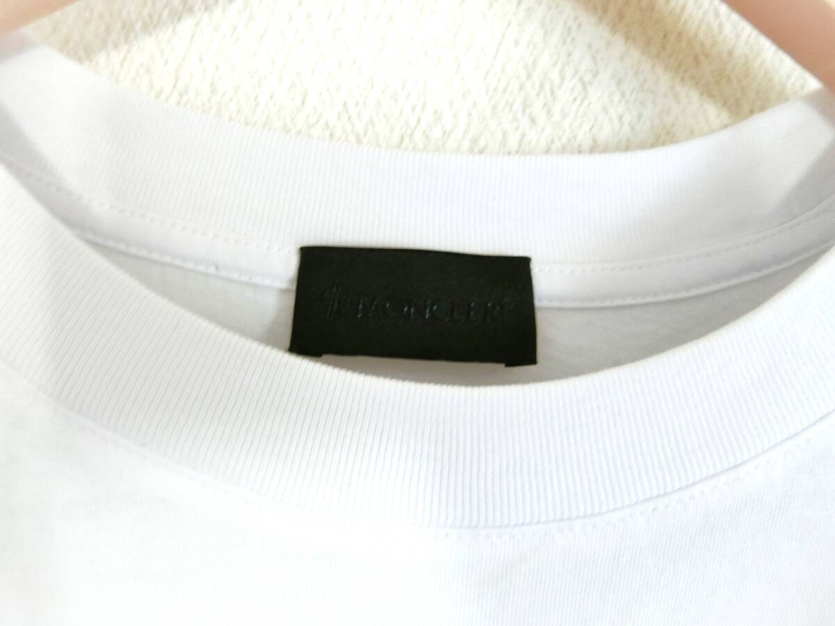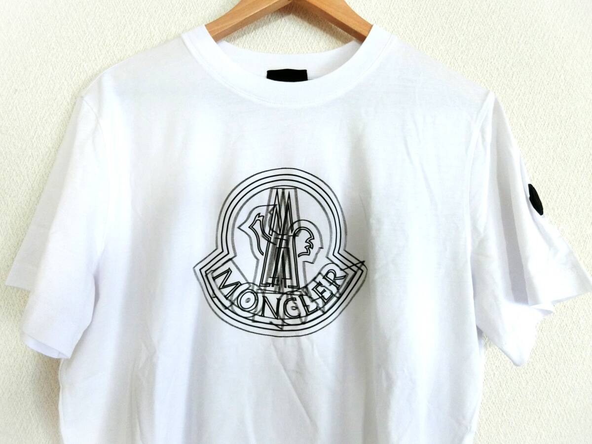 【新品 タグ付】MONCLER Tシャツ メンズ 半袖 クルーネック ホワイト カットソー シリコン ロゴ ワッペン フェイドアウトロゴモチーフ M 高級感