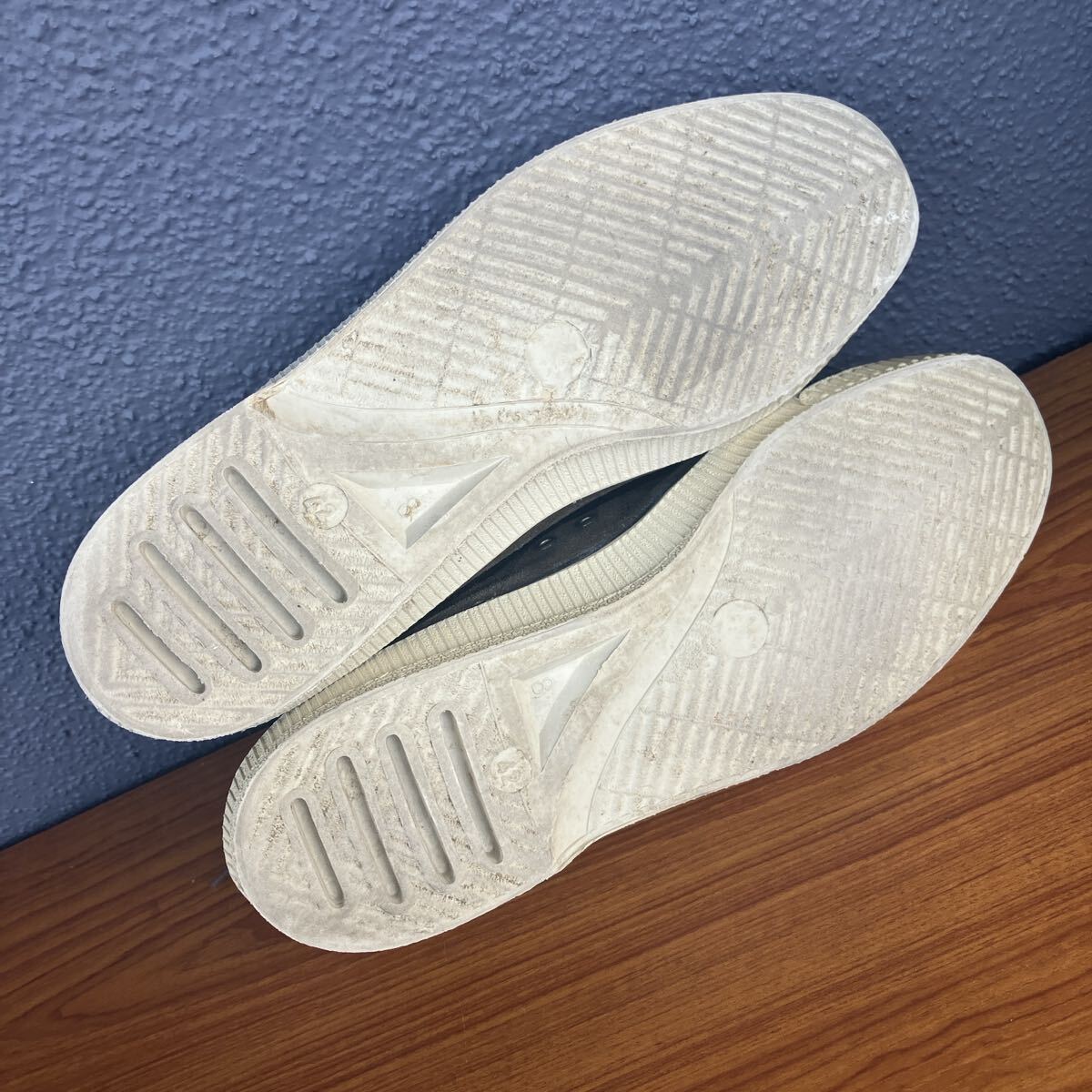 着用感や履き口の中にシミがありますが、穴や破れなどの目立つ大きなダメージはありません。