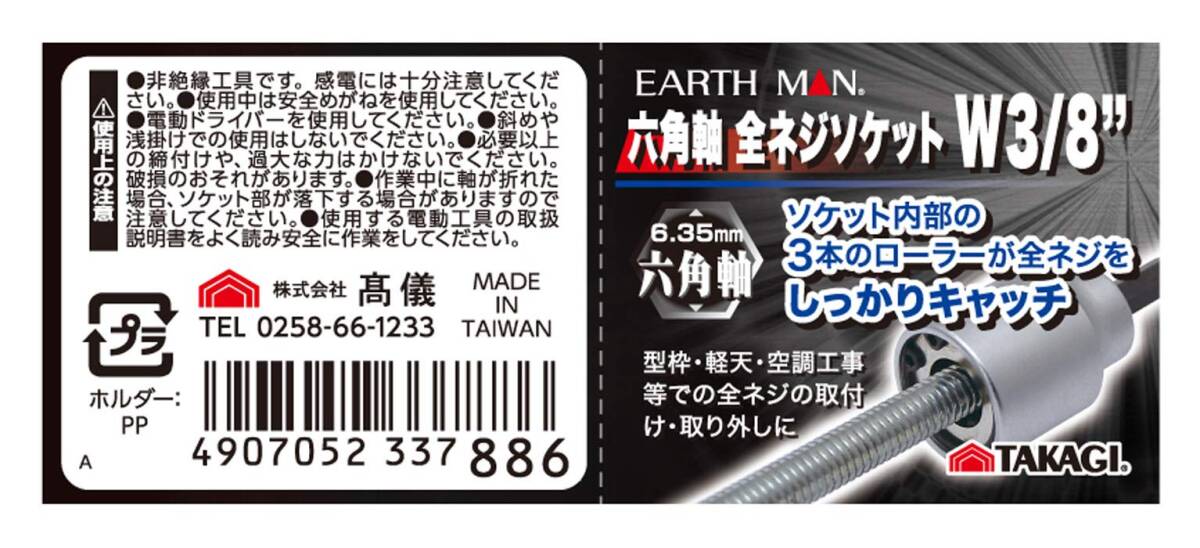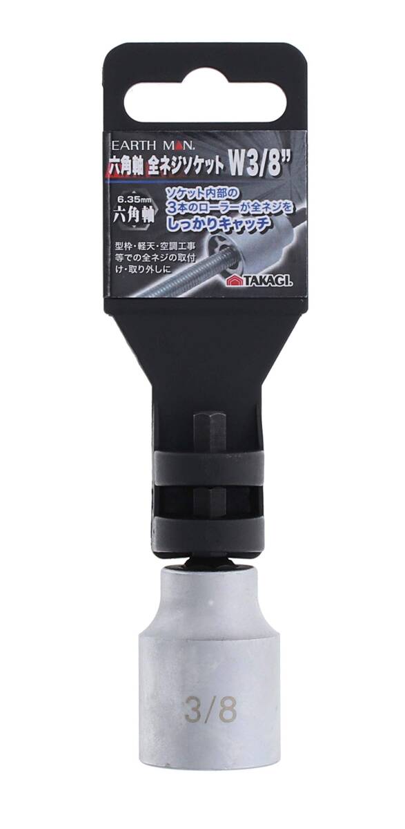【人気商品】MAN 六角軸全ネジソケット EARTH W3/8 高儀(Takagi)