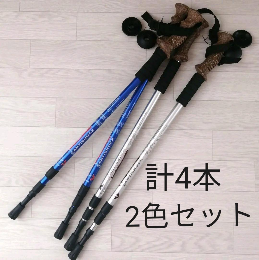 シルバーとブルーの2色セット、計4本入り。伸縮式で身長やシーンに合わせて調整可能。
