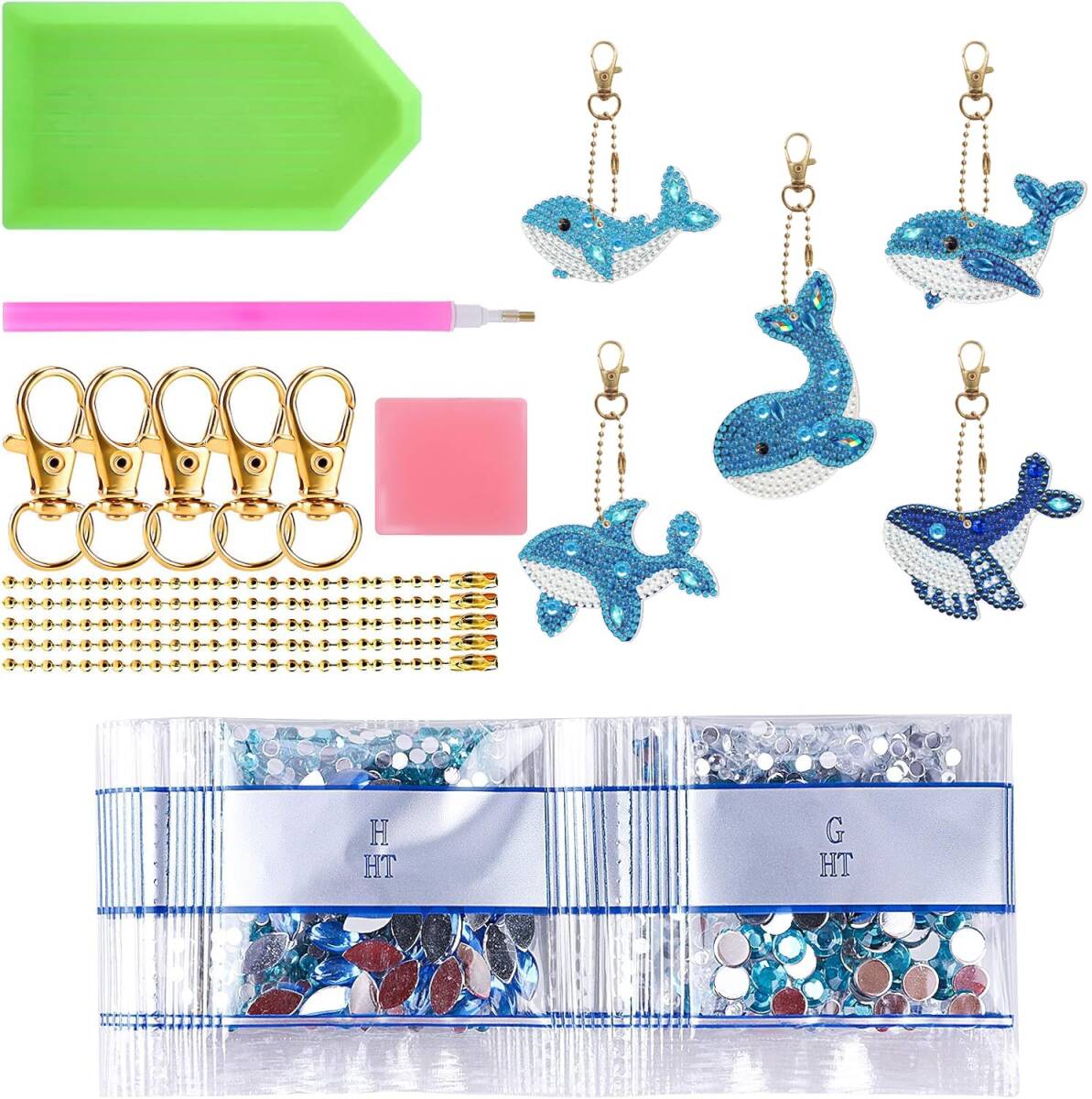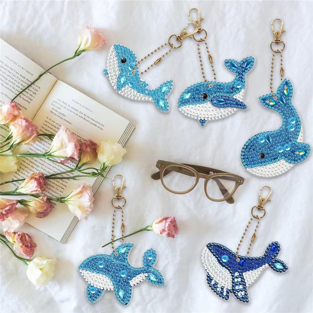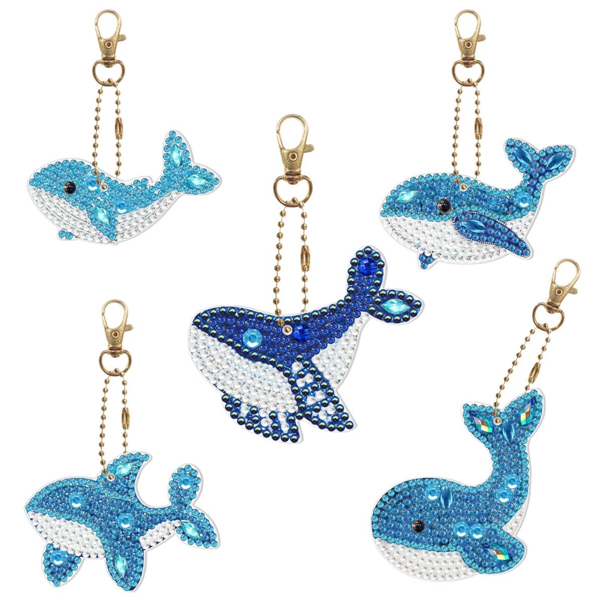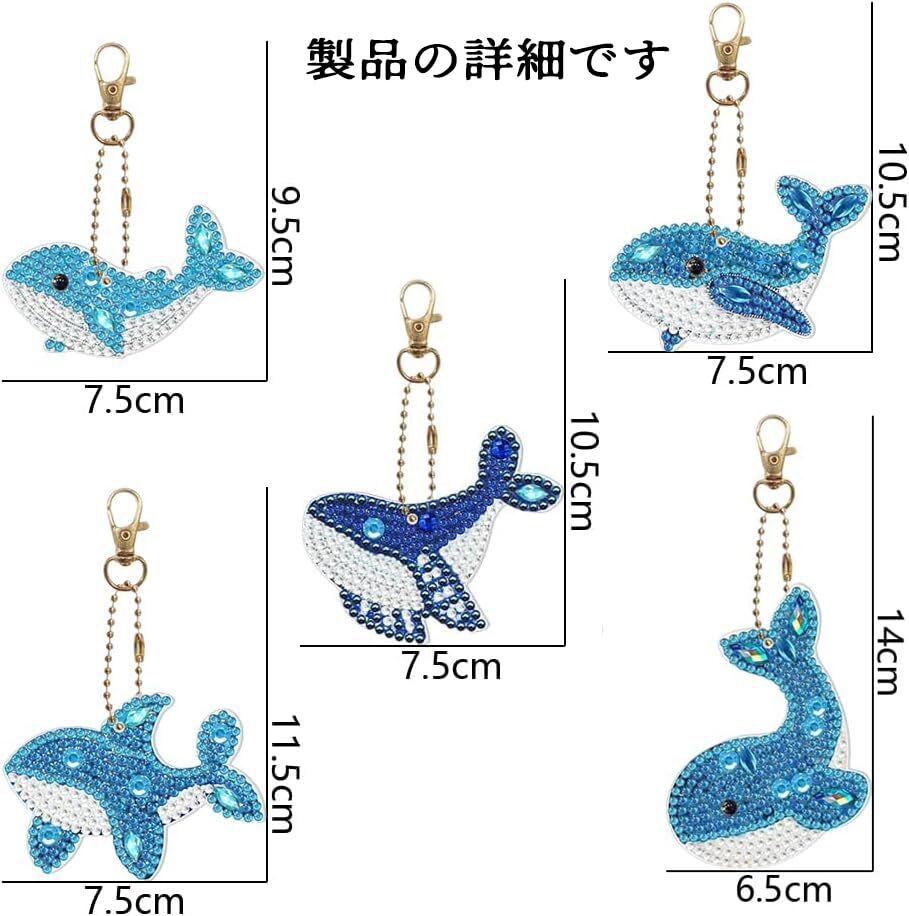 5 Dダイヤモンドアート ペンダント キーホルダー DIY 手工芸品 手作り ダイヤモンド塗装 かわいい 動物 ビーズ 絵画 ペンダント キット 子供 手作り Diy チェーン 専用 工具 5個セット (鯨)