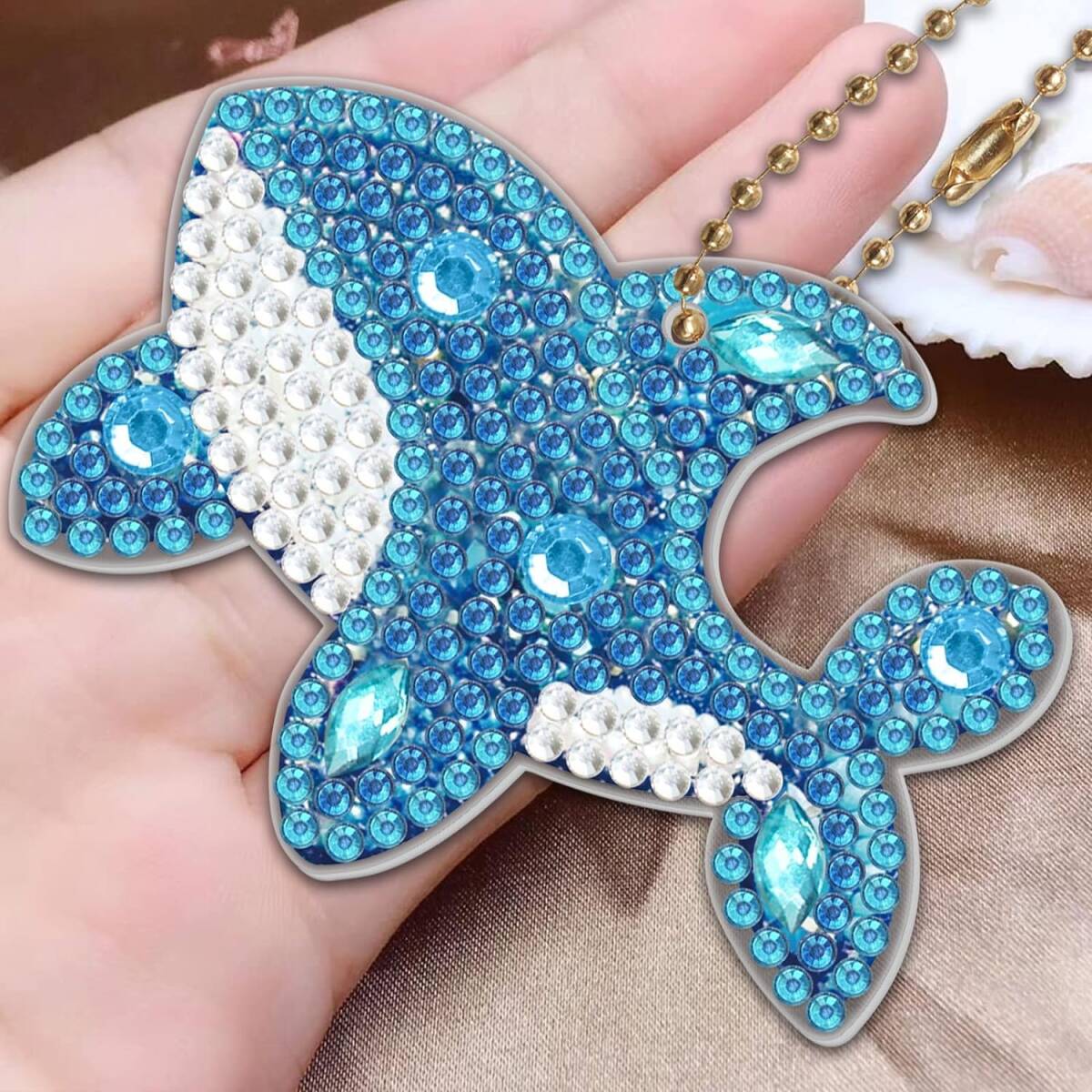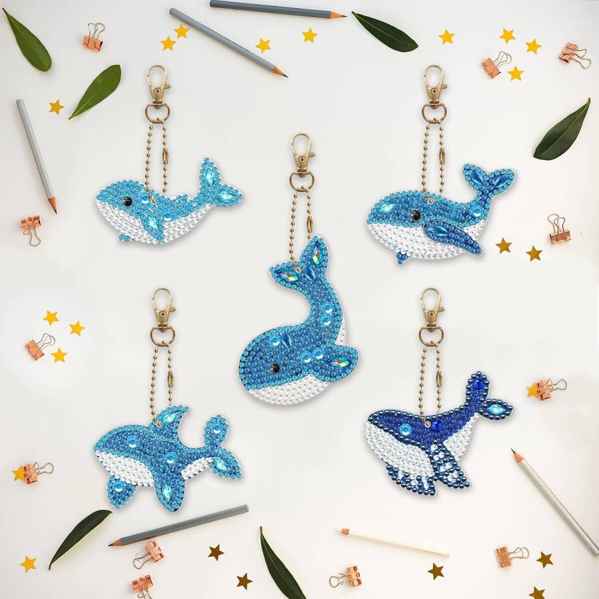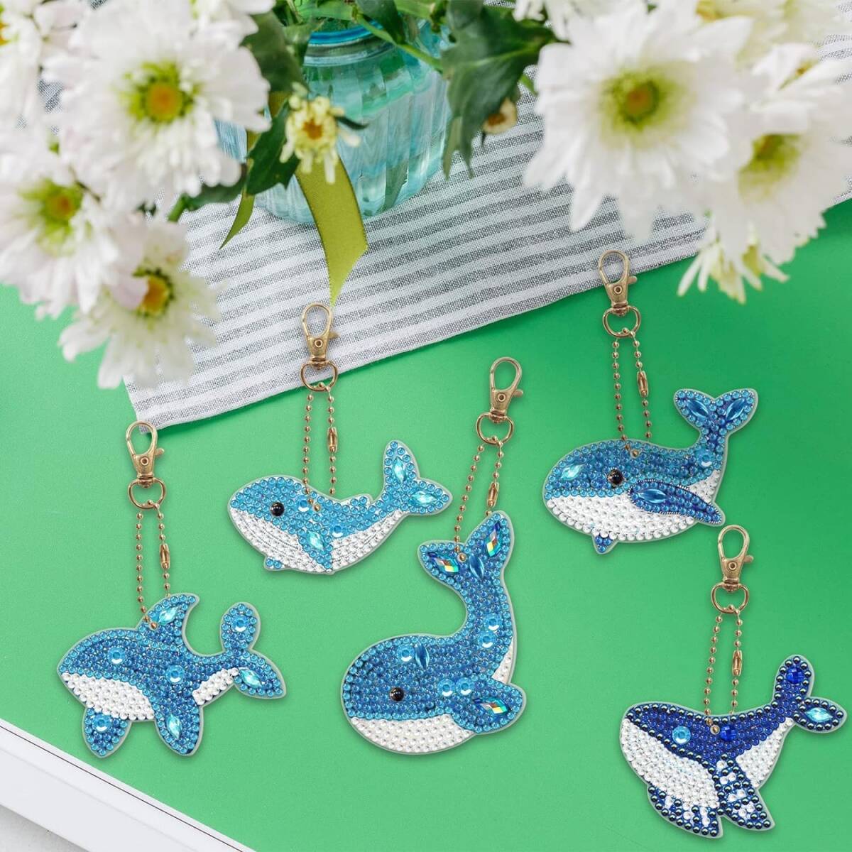 5 Dダイヤモンドアート ペンダント キーホルダー DIY 手工芸品 手作り ダイヤモンド塗装 かわいい 動物 ビーズ 絵画 ペンダント キット 子供 手作り Diy チェーン 専用 工具 5個セット (鯨)