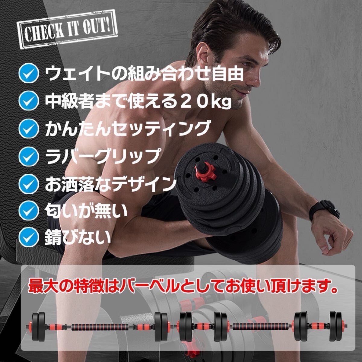 《仕様・機能》ダンベル バーベル 20kg 2個セット 可変式 バーベル可変 可変スピンロック式 プレート セット 重さ調整可能