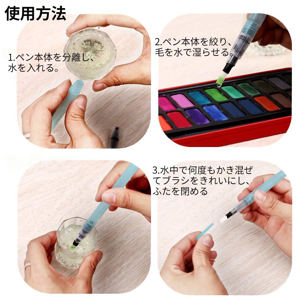 高品質のナイロン毛:適度な弾力のある高品質の毛。 水流がスムーズで、色を塗りやすい。 着色時に作品を傷める広がりの問題がない。