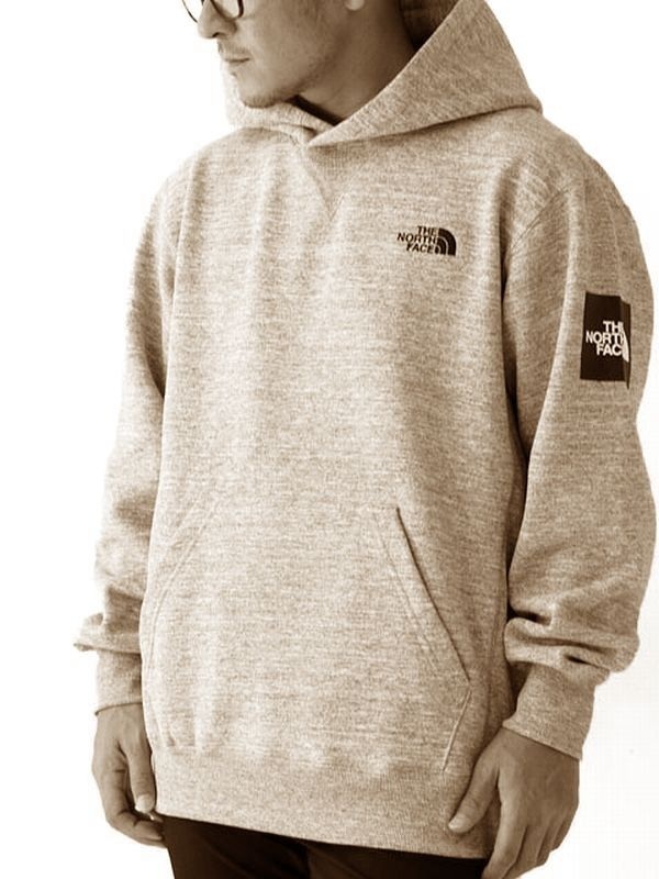 送無 THE NORTH FACE ノースフェイス NT61835 Square Logo Hoodie スクエア ロゴ フーディー 前V 裏起毛 スウェット パーカー オートミール