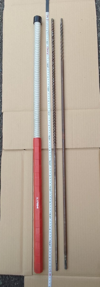 以前使用していましたが、不要になったので出品いたします。学校などの天井下側から天井内のコンクリートにアンカー打ち込み用に使用していました。3/8分のアンカー用です。ビットはヒルッティー、打ち込み用はビットKINGを加工したものになります。