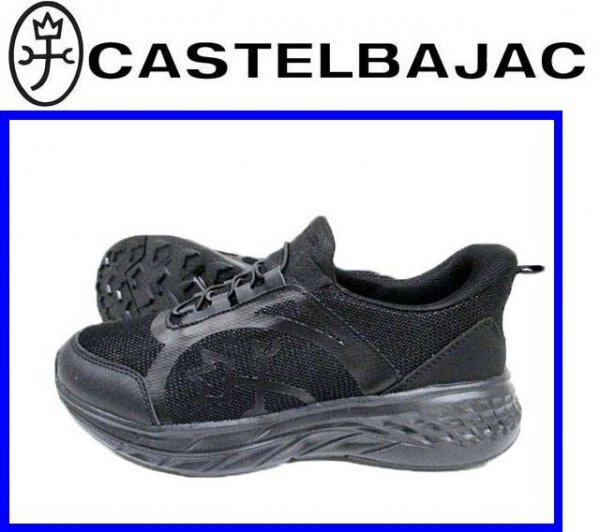 ★25.5cm★\15400〓CASTELBAJACカステルバジャック〓家紋プリントメッシュ軽量スリップインズスニーカーblack
