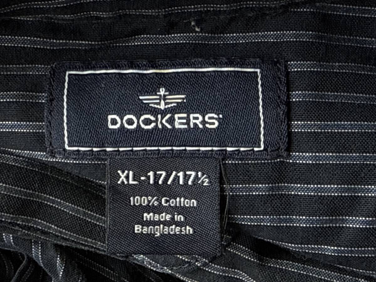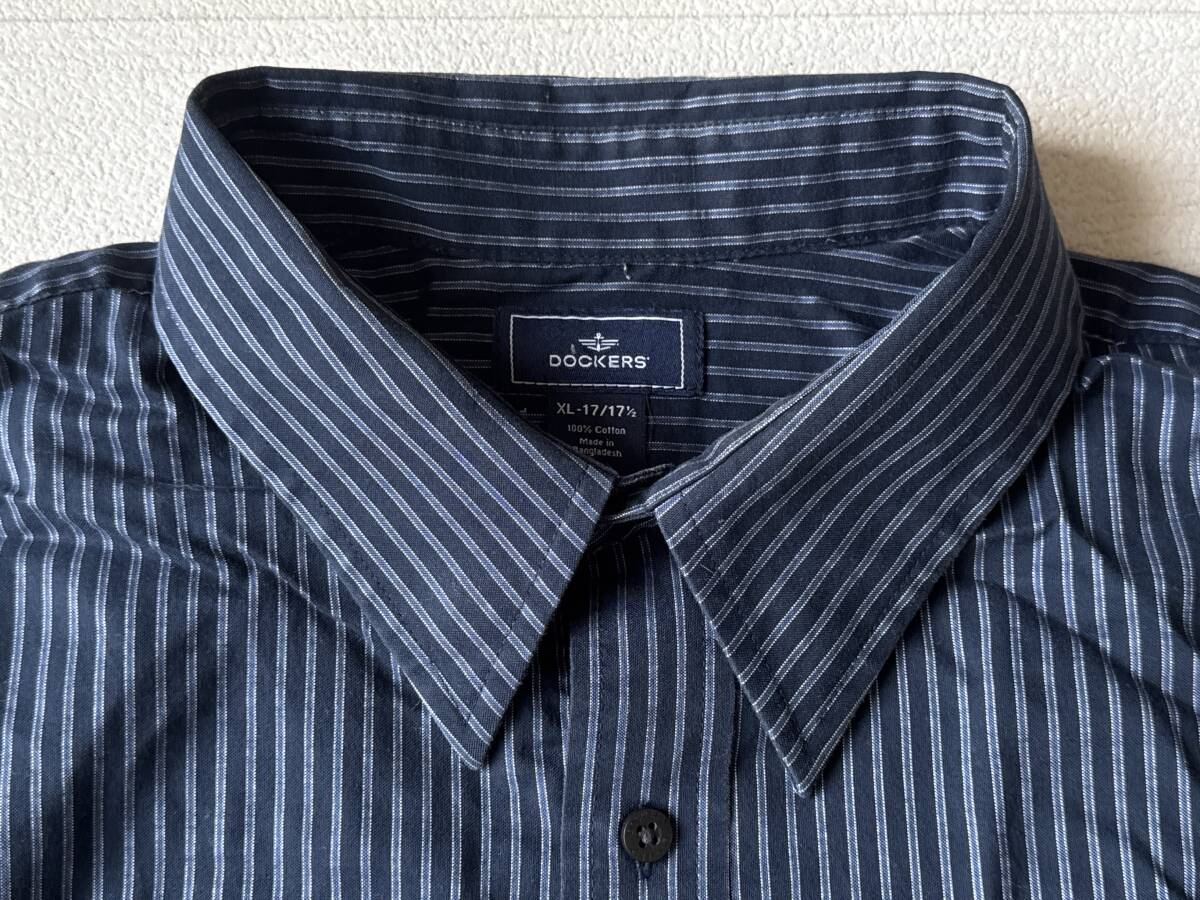 ☆送料無料☆ DOCKERS ドッカーズ USA直輸入 古着 長袖 胸ポケット付き ストライプ 隠しボタンダウン シャツ メンズ XL ダークネイビー