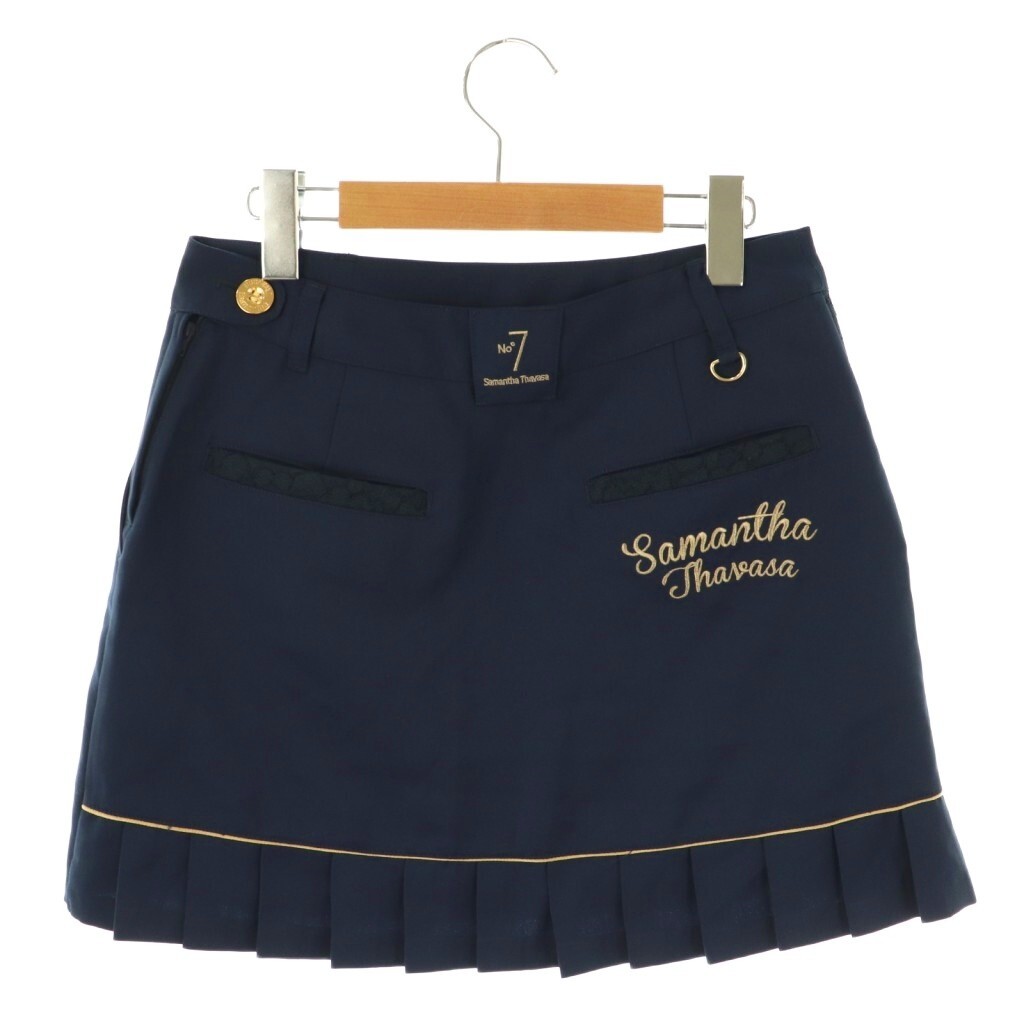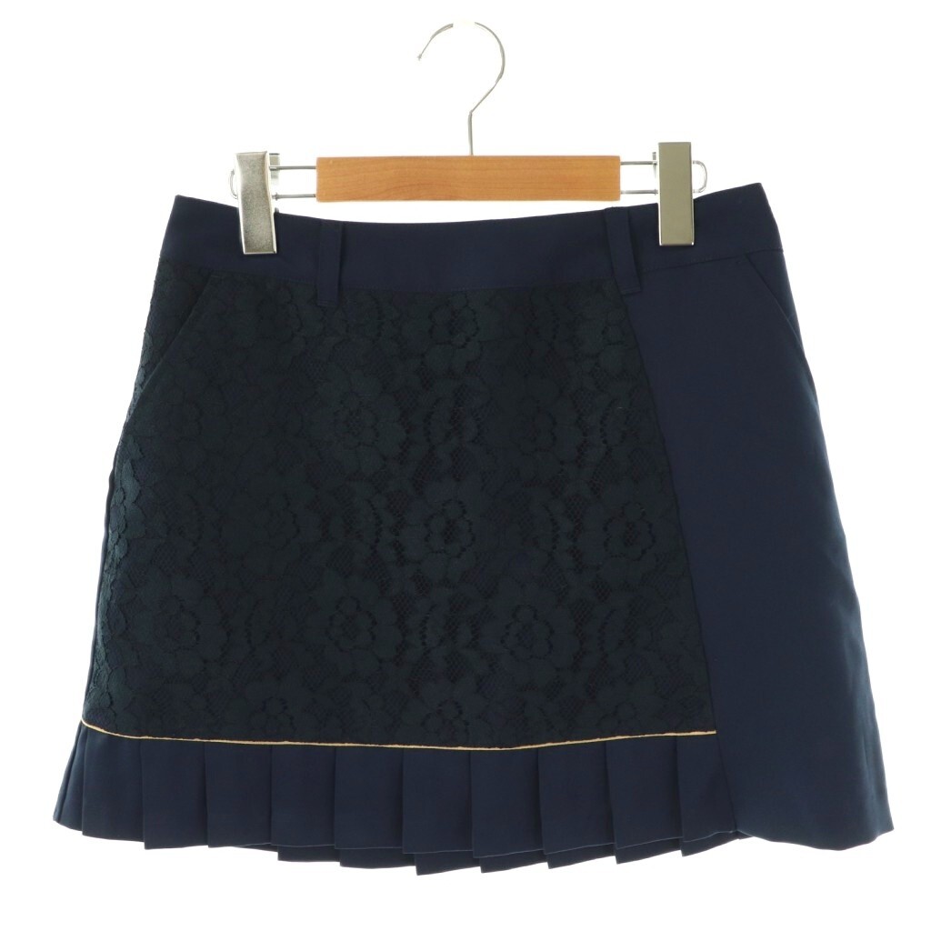 サマンサタバサ Samantha Thavasa No.7 レース切り替え裾プリーツミニスカート ロゴ刺繍 38 紺 ネイビー /AT ■OS レディース