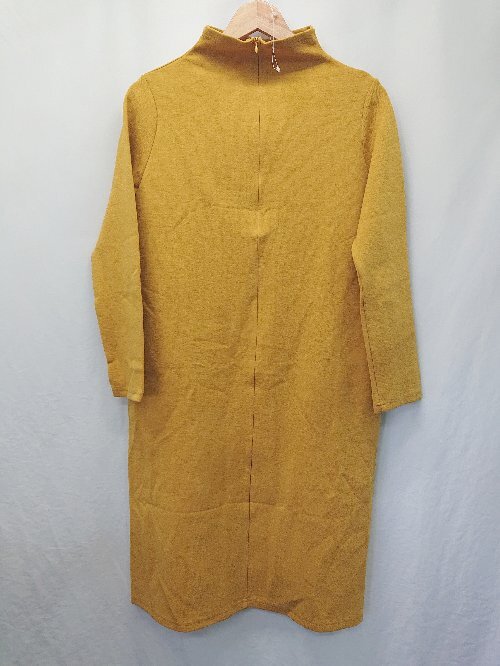 ◇ ⊇ DoCLASSE ドゥクラッセ ハイネック バックジップ 長袖 膝丈 ワンピース サイズ9 マスタード系 レディース E