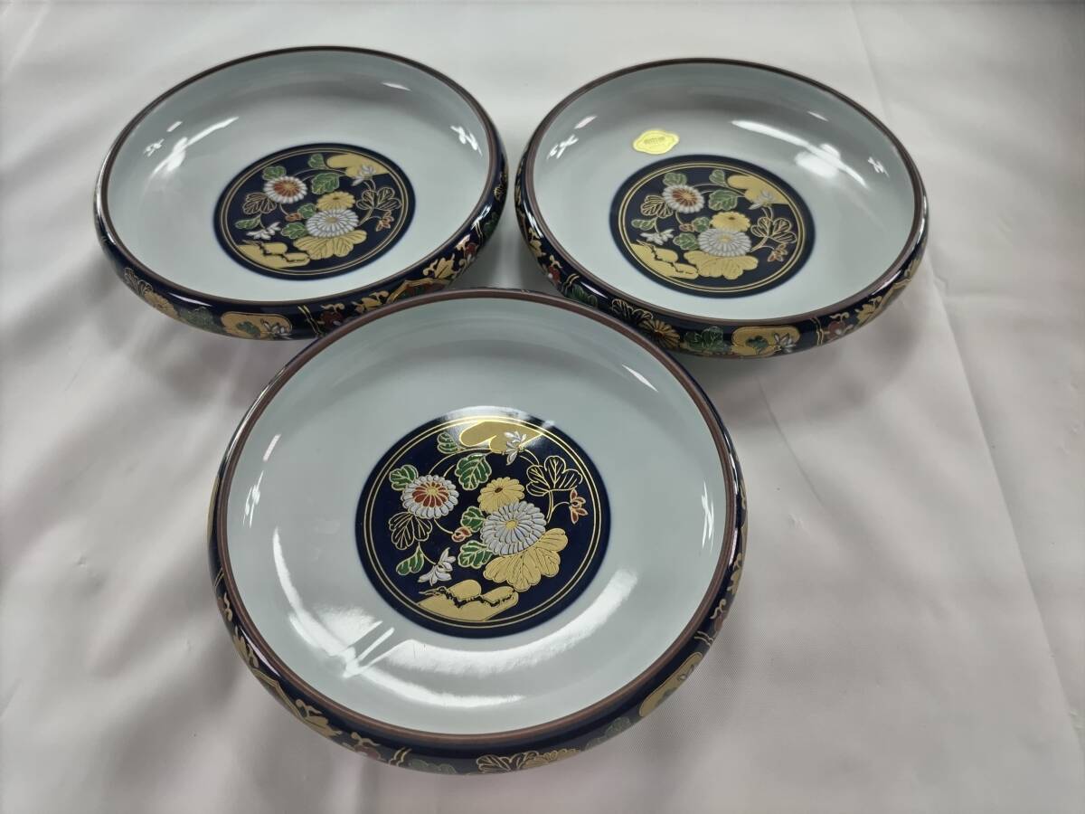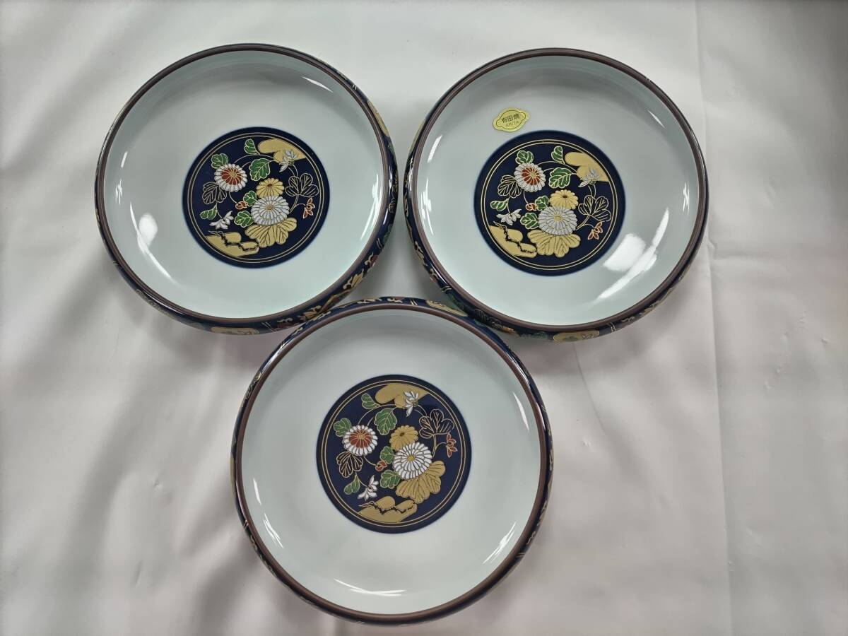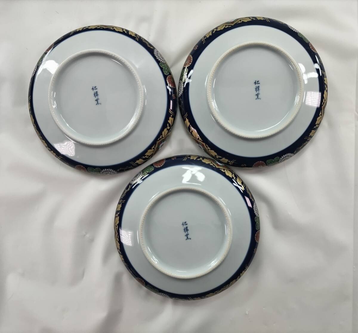 專龜【未使用】【美しい食器】有田焼 仁祥窯 錦友禅 3客揃 盛皿 丸皿 皿 レトロ 日本 古き良き 陶器 焼物 皿 節句 行事 会席 和食 和風 花