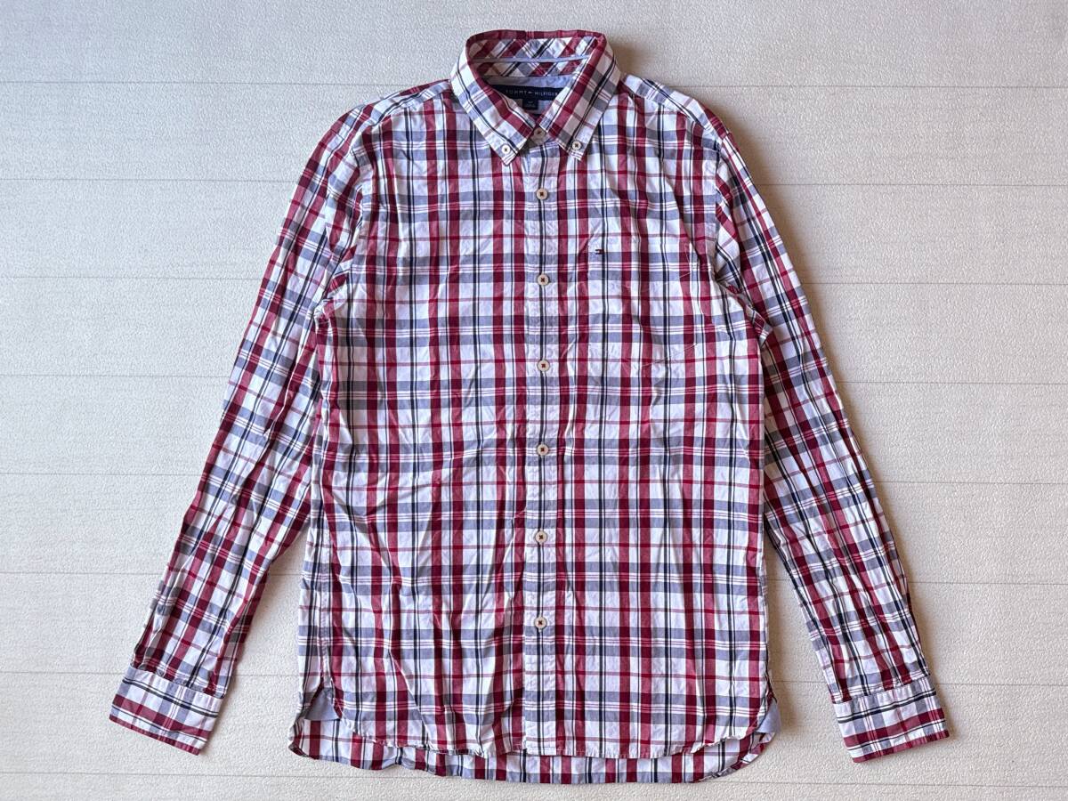 ☆送料無料☆ TOMMY HILFIGER トミーヒルフィガー USA直輸入 古着 長袖 チェック 胸ポケット付き ボタンダウン マチ付き シャツ メンズ S