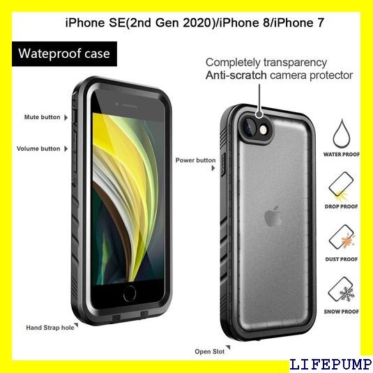 Cozycase 対応 iPhone SE2 / iPhone SE3 / iPhone 8 / iPhone 7 ケース 防水 - 耐衝撃 IP68防水防塵/全面保護/防雪/水中撮影/米軍規格/QI充電対応 iPhone SE2用 防水ケース ストラップホール付き 携帯ケース バンパー付き お風呂 海 雨用など iPhone SE 第三世代 2022/ iPhone SE 第二世代 2020/iPhone7/8に適用 ブラック 1192