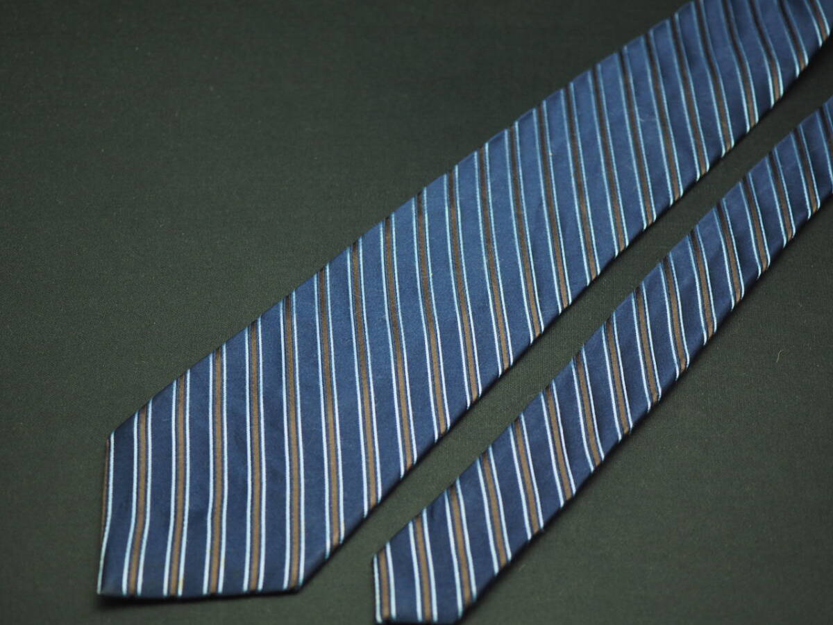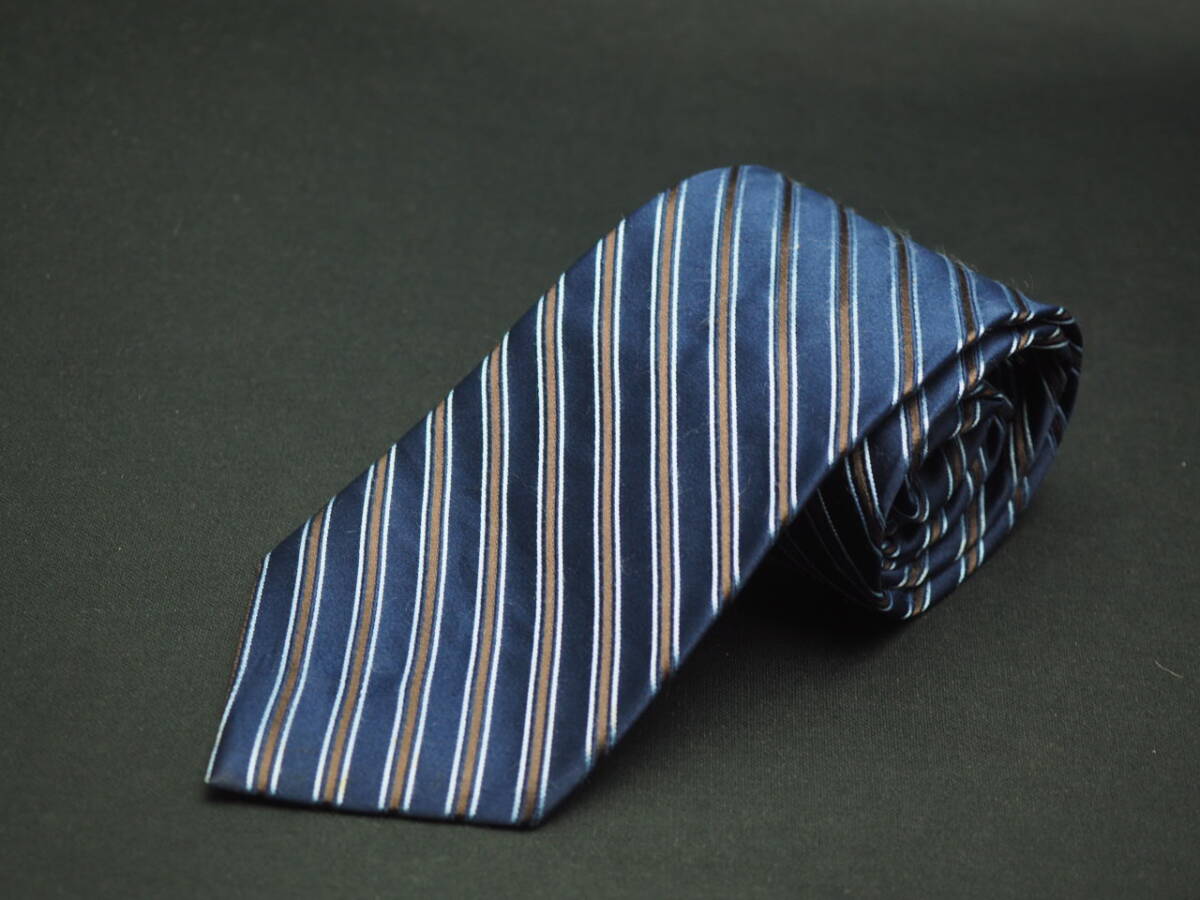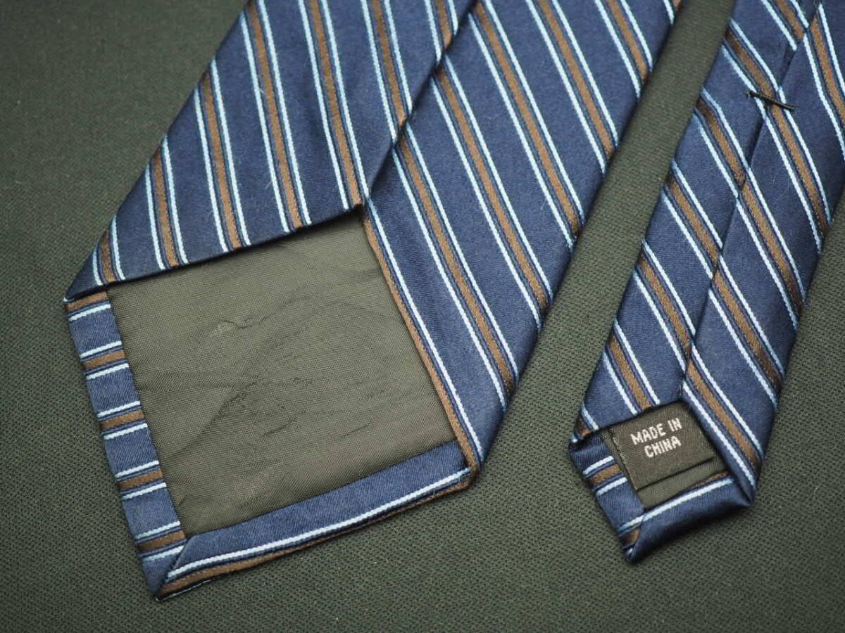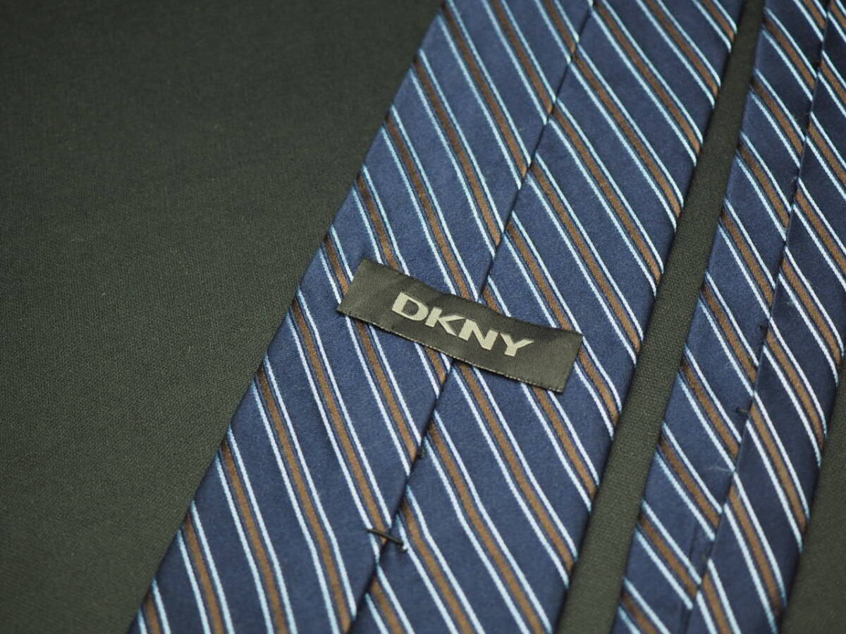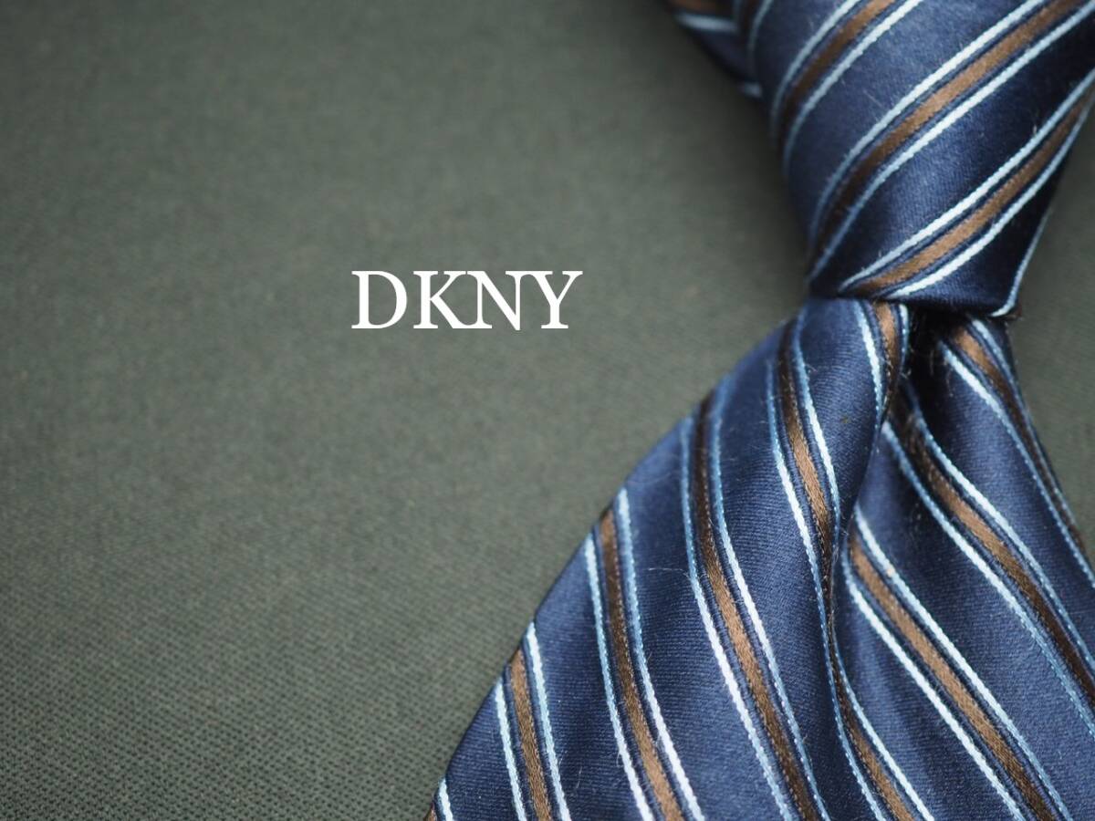 美品【DKNY ダナキャラン ニューヨーク】 F1563 ネイビー ブラウン系 SILK ブランド ネクタイ 古着 良品
