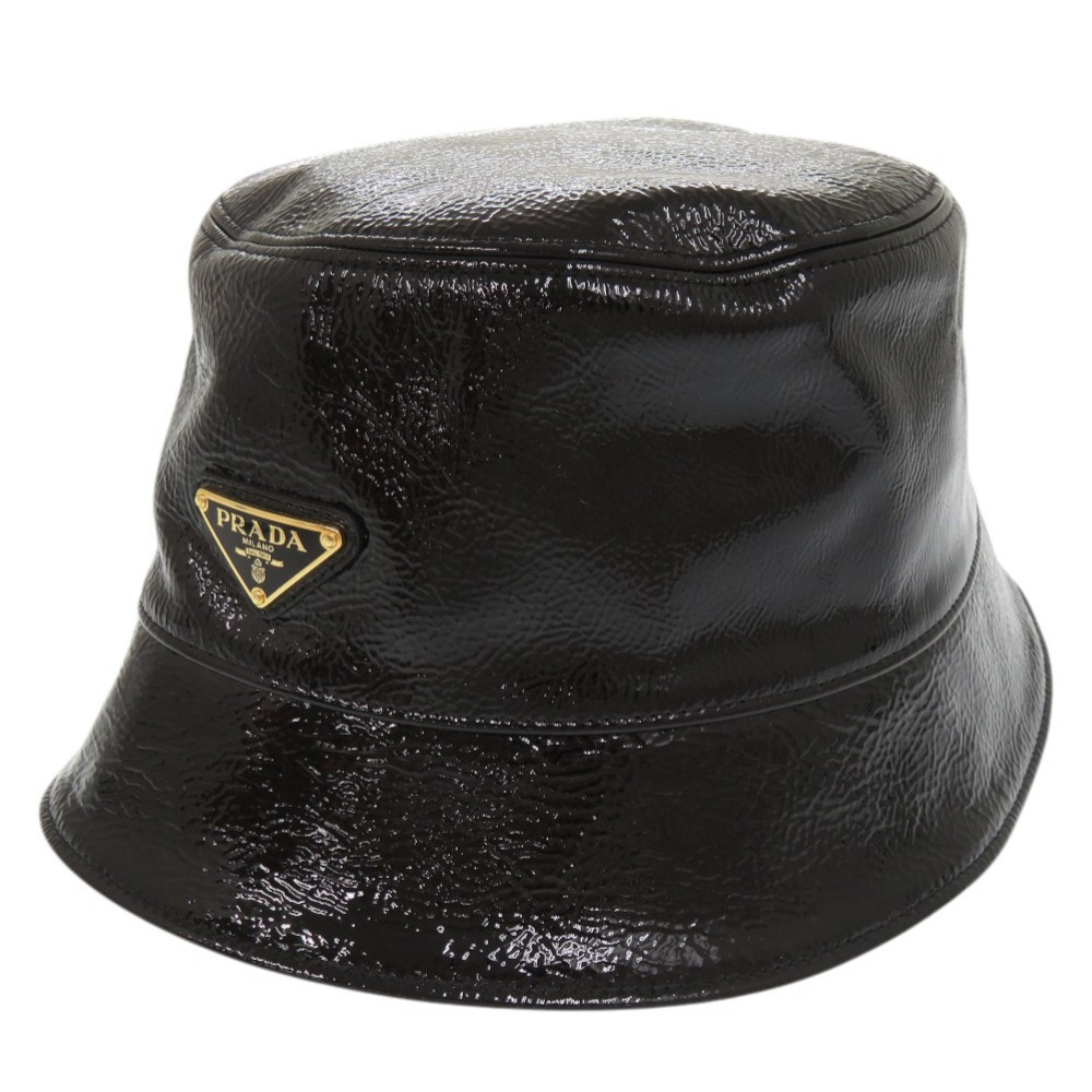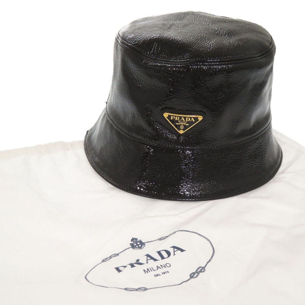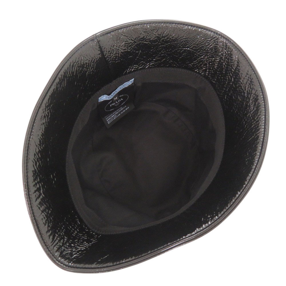 新品同様 プラダ トライアングルロゴ サイズM 1HC137 パテントレザー ブラック バケットハット 帽子 黒 0729 PRADA