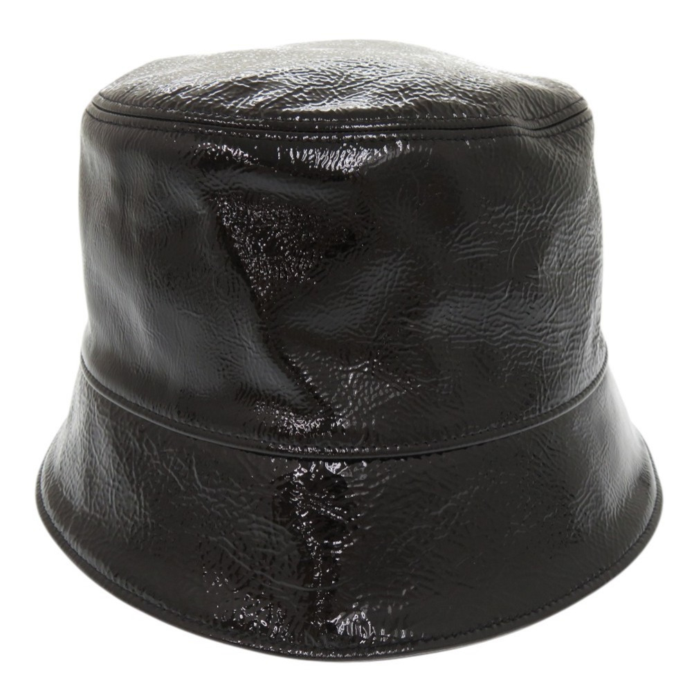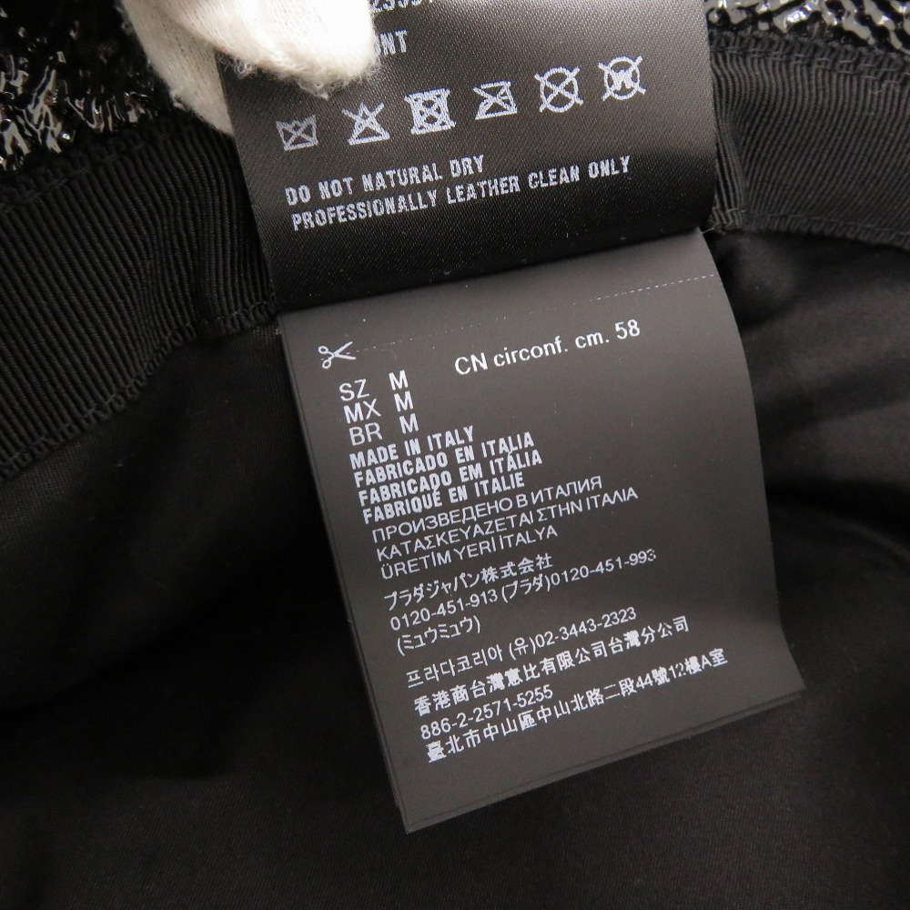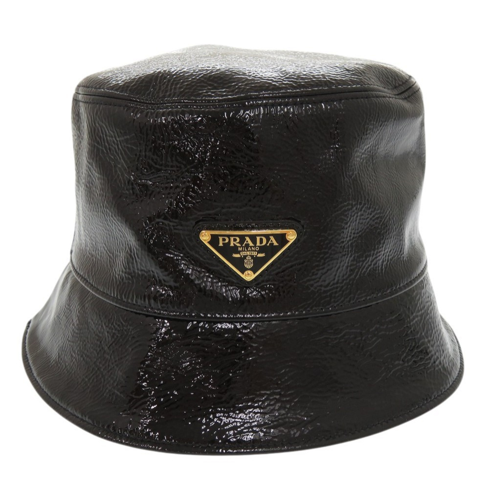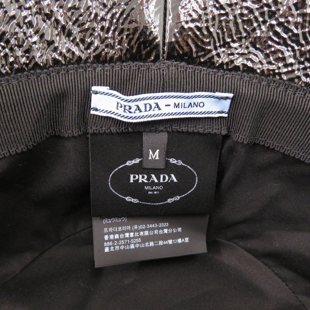 新品同様 プラダ トライアングルロゴ サイズM 1HC137 パテントレザー ブラック バケットハット 帽子 黒 0729 PRADA