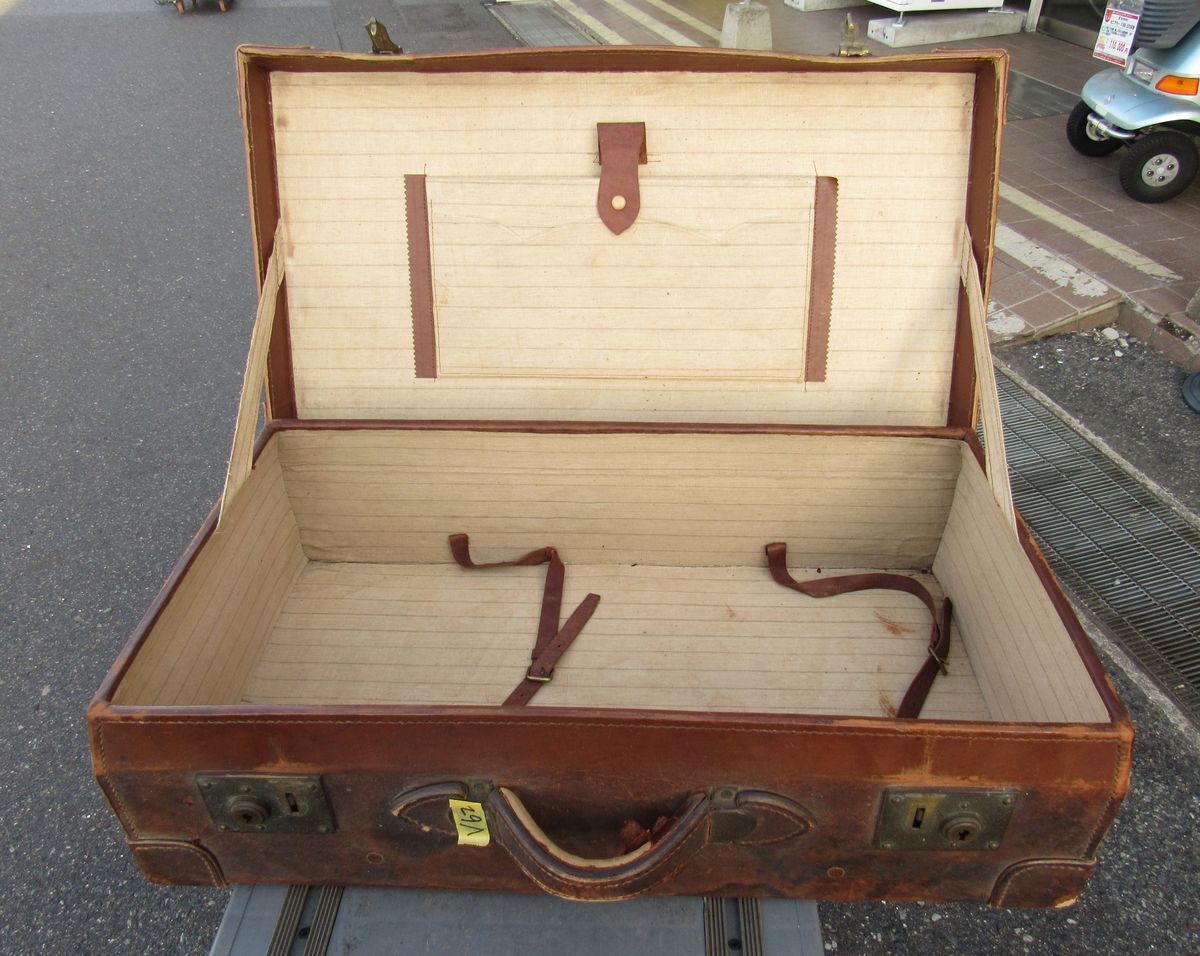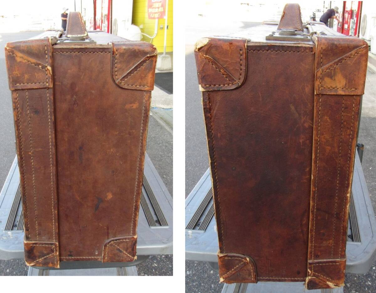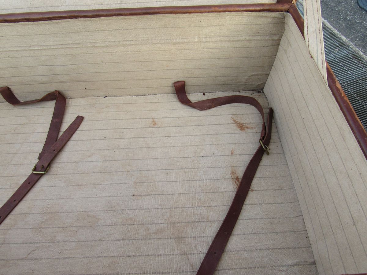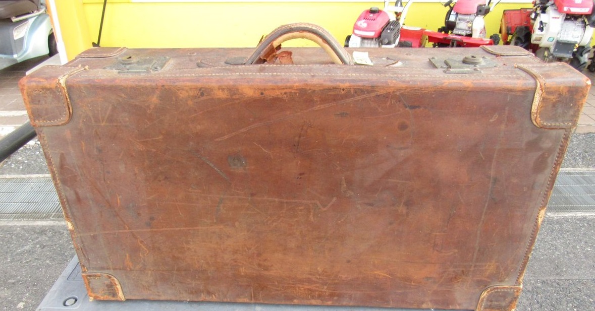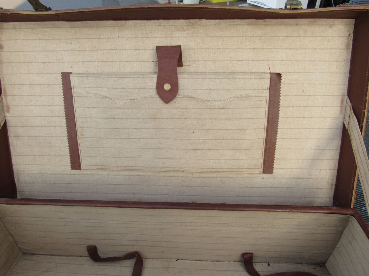 ■ BEh 昭和レトロ トランク カバン 65 39 18cm 外内共キズ汚れ変形破れあり 留め金はかかります 暗め焦げ茶色 鍵なし 鳥取 引取歓迎 V62