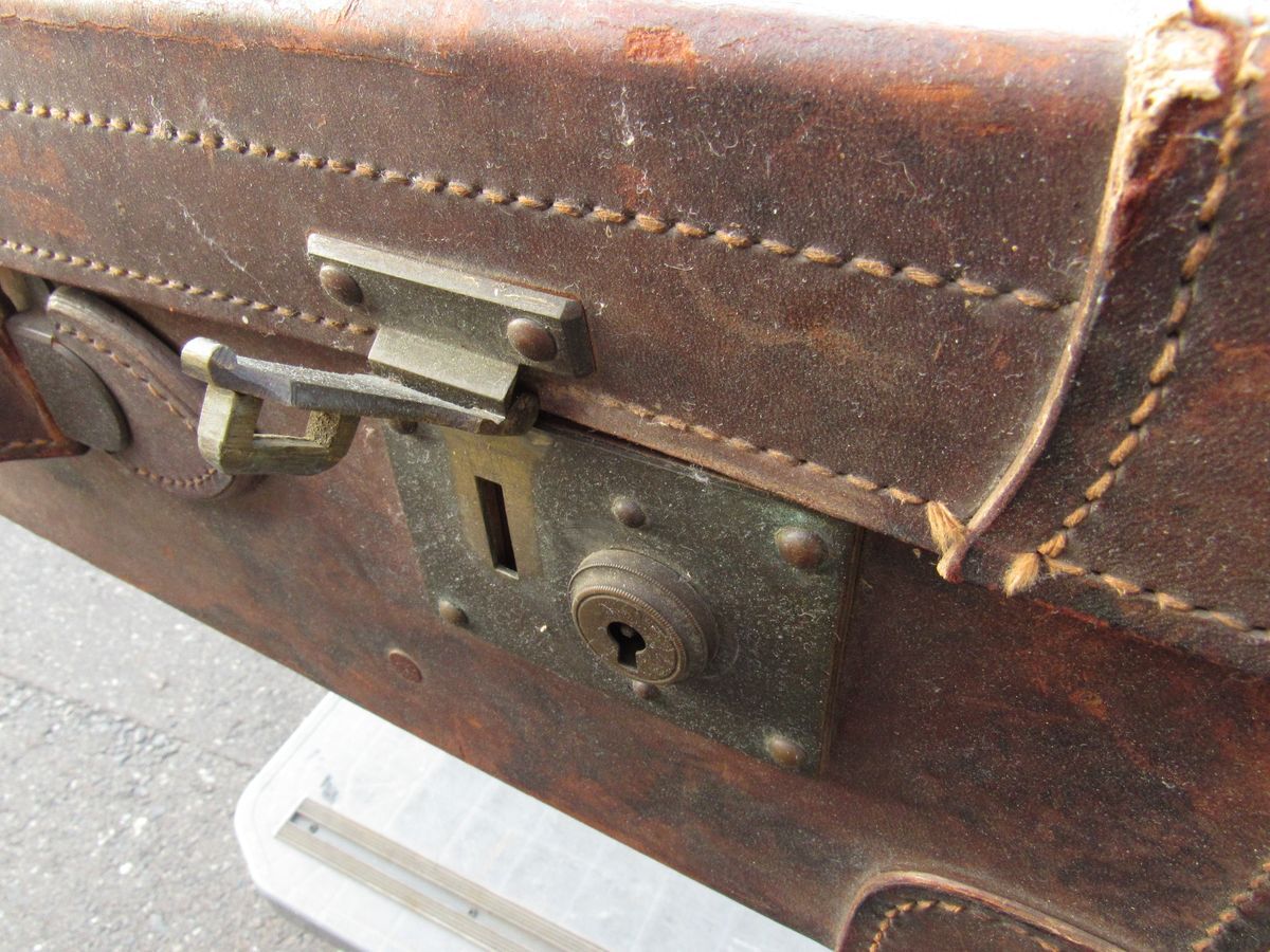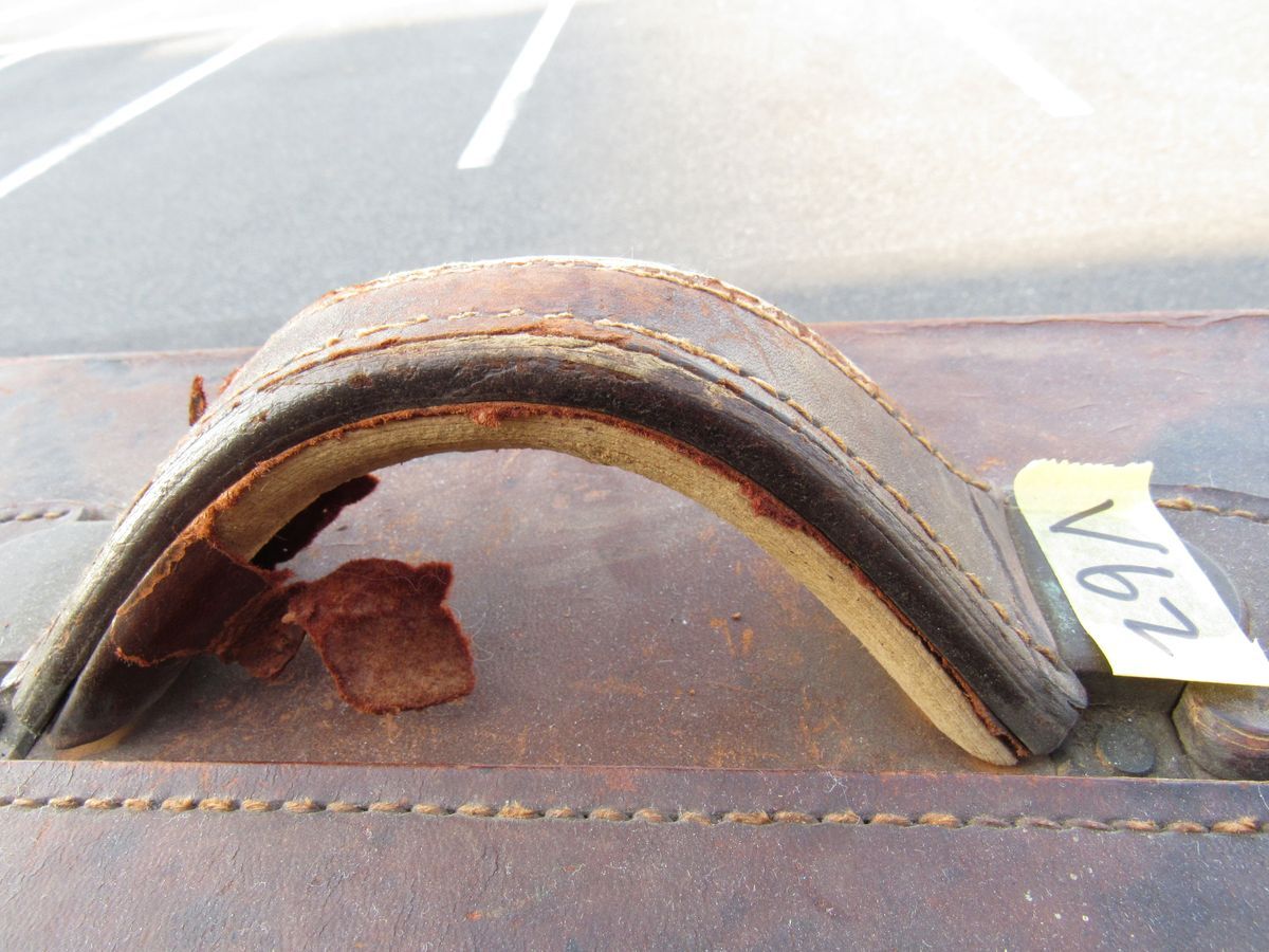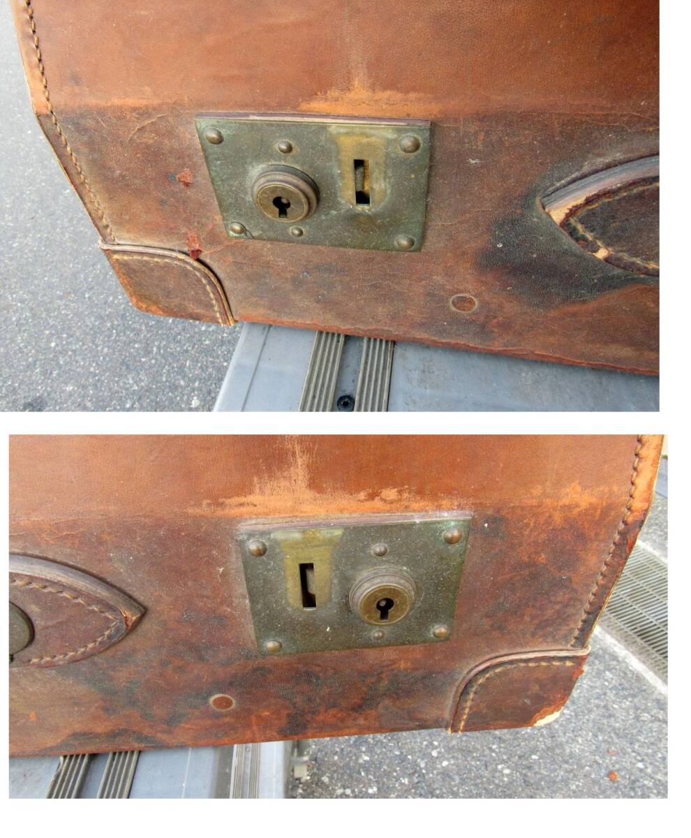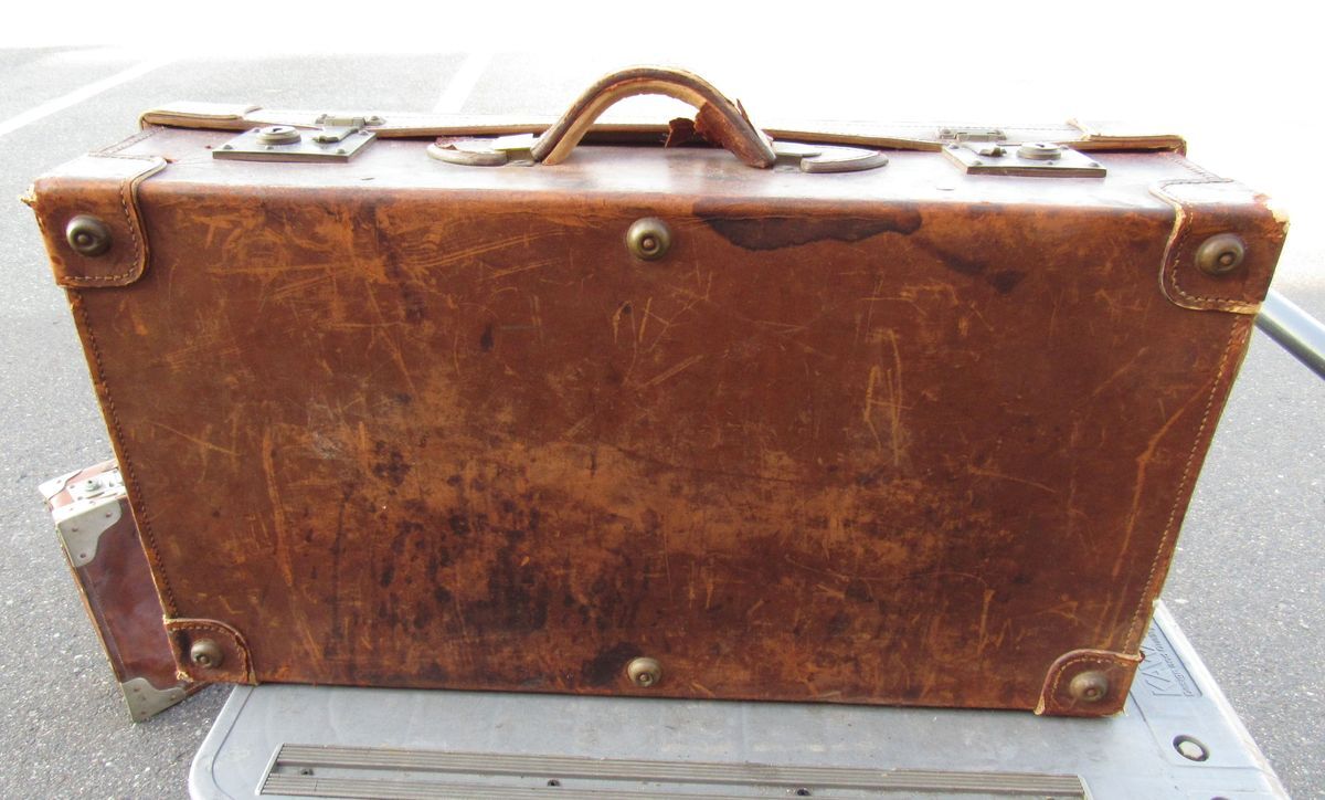 ■ BEh 昭和レトロ トランク カバン 65 39 18cm 外内共キズ汚れ変形破れあり 留め金はかかります 暗め焦げ茶色 鍵なし 鳥取 引取歓迎 V62