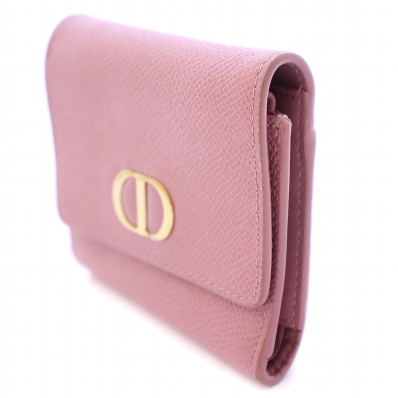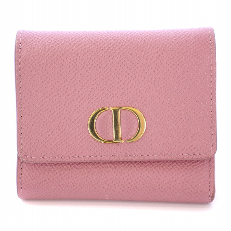 クリスチャンディオール 30モンテーニュ ロータスウォレット 三つ折り財布 コンパクトウォレット 折りたたみ レザー ロゴ ピンク