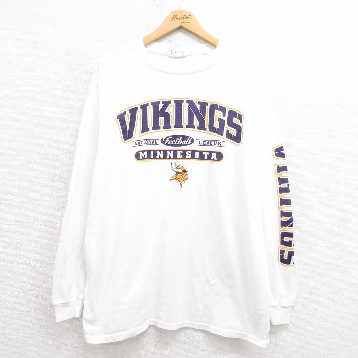 【商品名】 L★古着 長袖 ビンテージ Tシャツ メンズ 00年代 00s NFL ミネソタバイキングス コットン クルーネック 白 アメフト スーパーボウル
