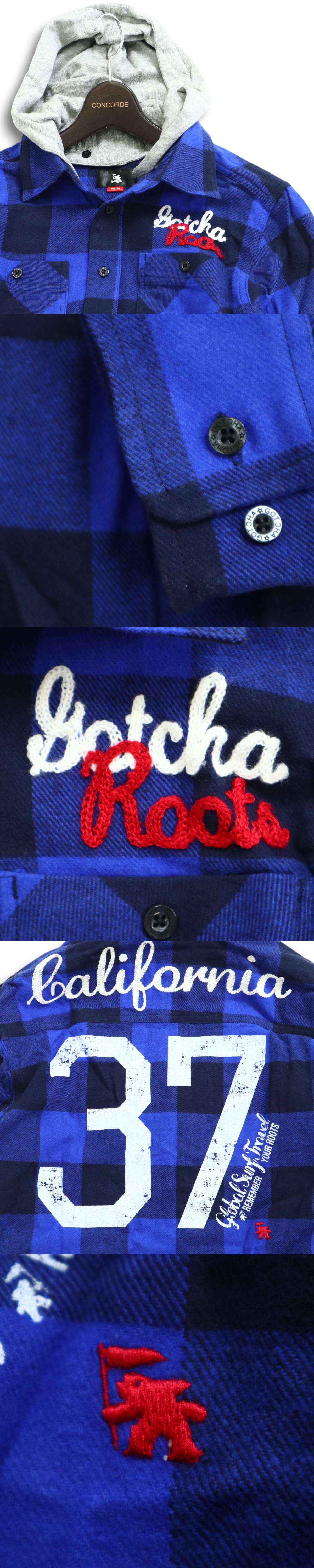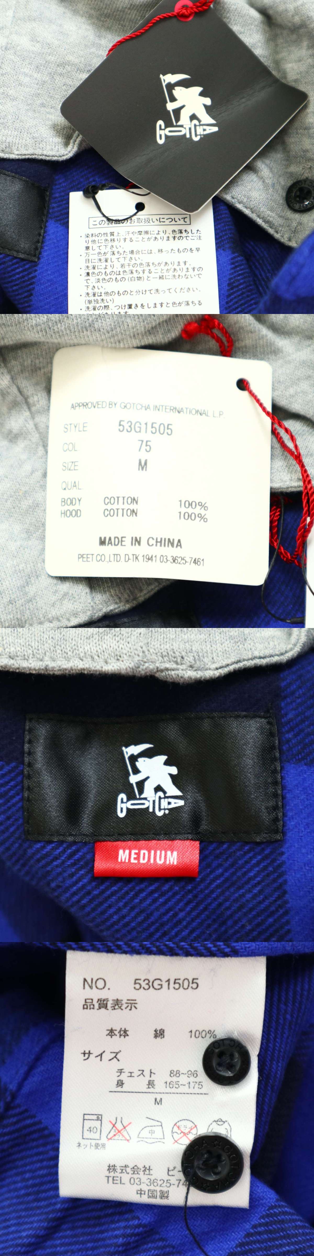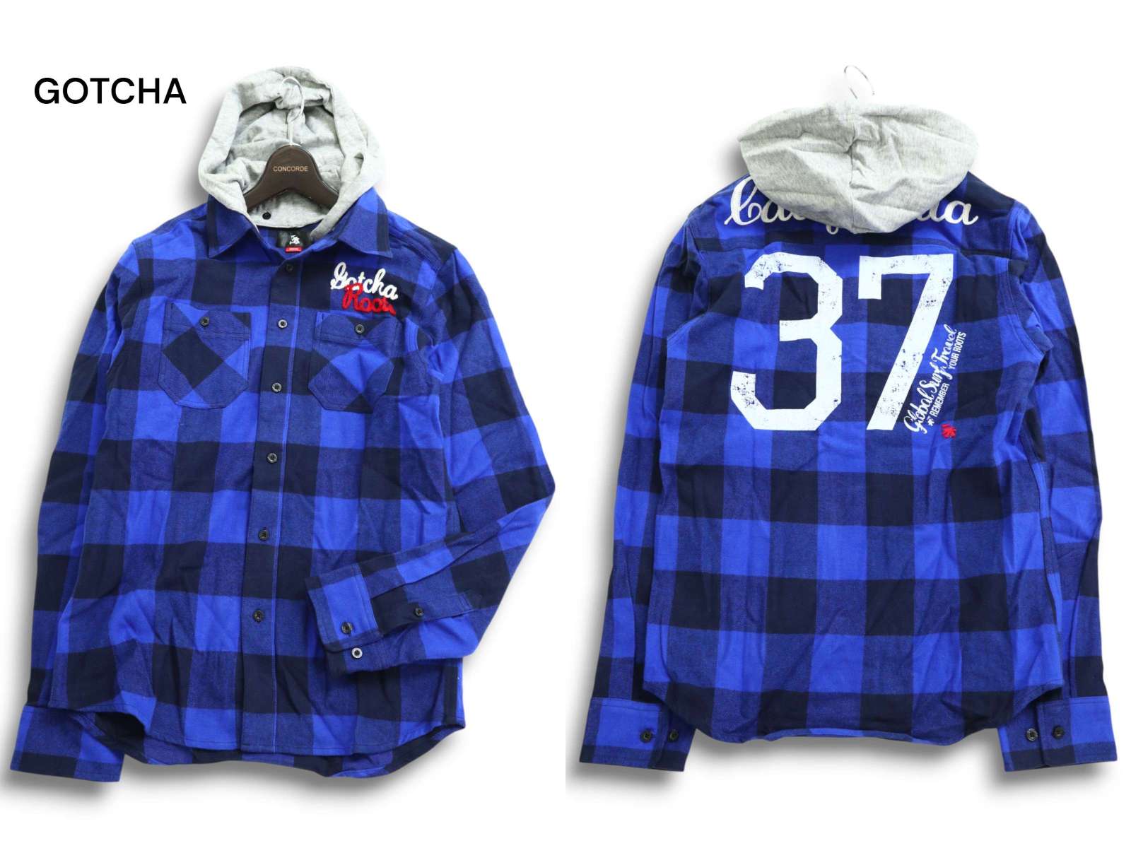 【新品 未使用】 GOTCHA ガッチャ 秋冬 ナンバリング★ フーディー 長袖 チェック ネル シャツ パーカー Sz.M メンズ サーフ