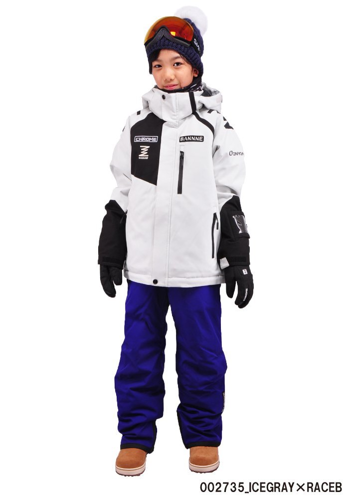 | 詳細 | 透湿性25000g BANNNEの最上位モデル 【特徴・詳細】 BANNNE(バンネ)ブランドの上位モデルBANNNE CHROMEシリーズのジュニアスキースーツ。 50年以上の実績を持つオンヨネ社の協力により誕生した高機能スキーウェアです。 ウィンターアクティビティに必要な機能を追求しました。 バンナブルコンディショナーDRY (高透湿素材)を採用。 高い透湿性で汗による蒸れを軽減。 快適性を維持し、体温の低下も抑えることができます。 バンナブルプロテクト (防水・撥水素材)を採用し、高い撥水性と耐水圧で風や雨・雪の侵入を防ぎます。 【サイズ】 ジャケット: 単位(cm)/着丈/胸囲/裾回/肩幅/袖丈/裄丈/袖口 130/56/96/97/38/49/68/22 140/60/100/100/40/53/73/23 150/64/106/104/42/56/77/24 160/68/112/109/45/59/81.5/24 170/72/118/114/48/62/86/25 パンツ: 単位(cm)/ウエスト/大腿囲/脇丈/股下/脚口 130/68/56/75/56/47 140/70/59/81/61/47 150/74/62/87/66/49 160/78/66/93/71/51 170/84/70/99/76/53 ※個体によって多少の誤差ございます。 【サイズ調整機能】 ジャケット両脇下のストラップ、パンツ内部のストラップで、最大15cmの調節が可能です。 成長の早いお子様でも長く着られるよう考慮しています。 【カラー】 002735_ICEGRAY×RACEBLUE アイスグレー×レースブルー 053009_FIRERED×BLACK ファイヤーレッド×ブラック 257009_KHAKI×BLACK カーキ×ブラック 735053_RACEBLUE×FIRERED レースブルー×ファイヤーレッド 【素材】 ・表地:ポリエステル100%(ポリウレタンラミネート加工) ・裏地:ポリエステル100% ・中わた:ポリエステル100% 【耐水性】 耐水圧:15000mm 透湿性:25000g/m2/24hrs 【機能】 ジャケット: ・フード取外し可能 ・襟裏トリコット ・左袖パスケース(収納可能) ・裾ドローコードで調整可能 ・袖口はマジックテープにて調節可能 ・フロントポケット2か所 ・左胸ポケット1か所 ・サイズ調節機能付(最大15センチ) パンツ: ・サスペンダー(取り外し可能) ・ウエストアジャスター ・前ポケット2箇所 ・雪の浸入を防ぐ足口スパッツ ・サイズ調節機能付(最大15センチ) ・スキー板等との接触で傷みやすい内裾にエッジガード付 |