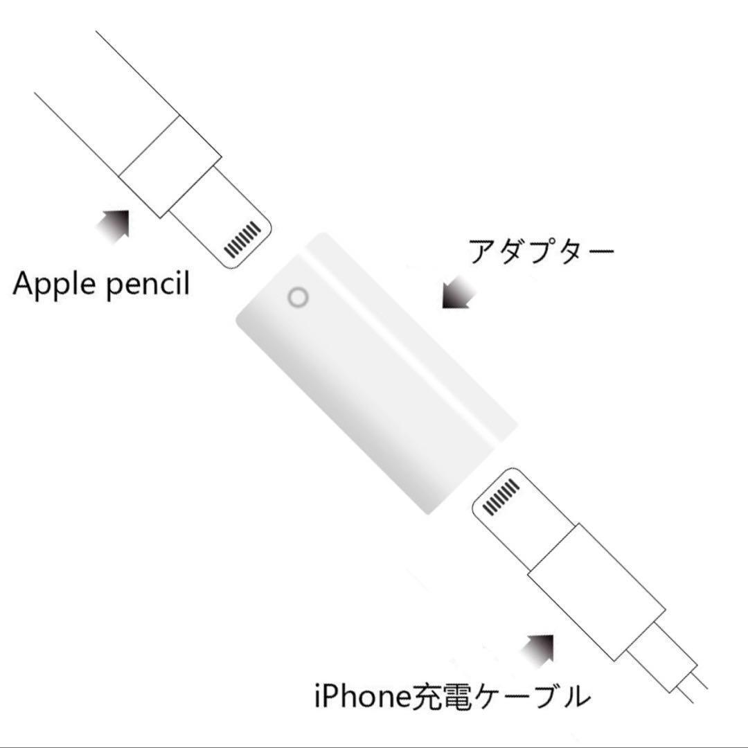 使用方法:アダプタの一端は別のケーブルを接続して、別端はアップルペンシルを接続します。