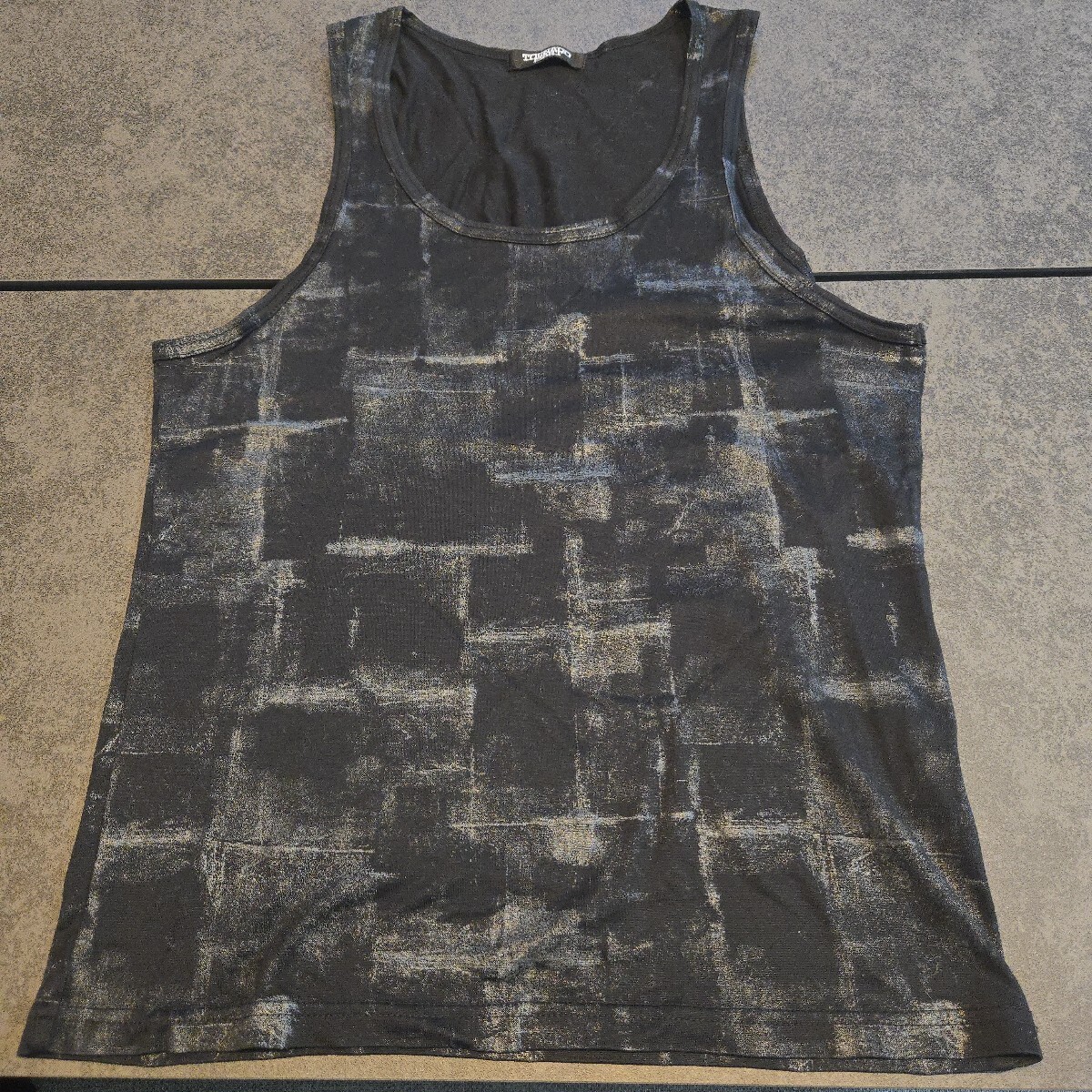 TORNADO MART のタンクトップになります。黒ベースにシルバー調のプリント模様が特徴です。クローゼット整理の為、他にもいろいろ出品いたしますのでわからない事は質問お願いいたします。格安スタートですのでノークレームノーリターンを約束出来る方のみ入札お願いいたします。