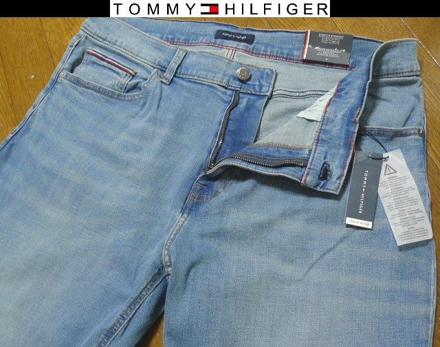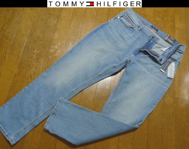 36(US)94cm★セール送無料★新品トミーヒルフィガーUSA限定デニムパンツ藍染ライトインディゴ染 ヒゲ アタリ加工4方向ストレッチ