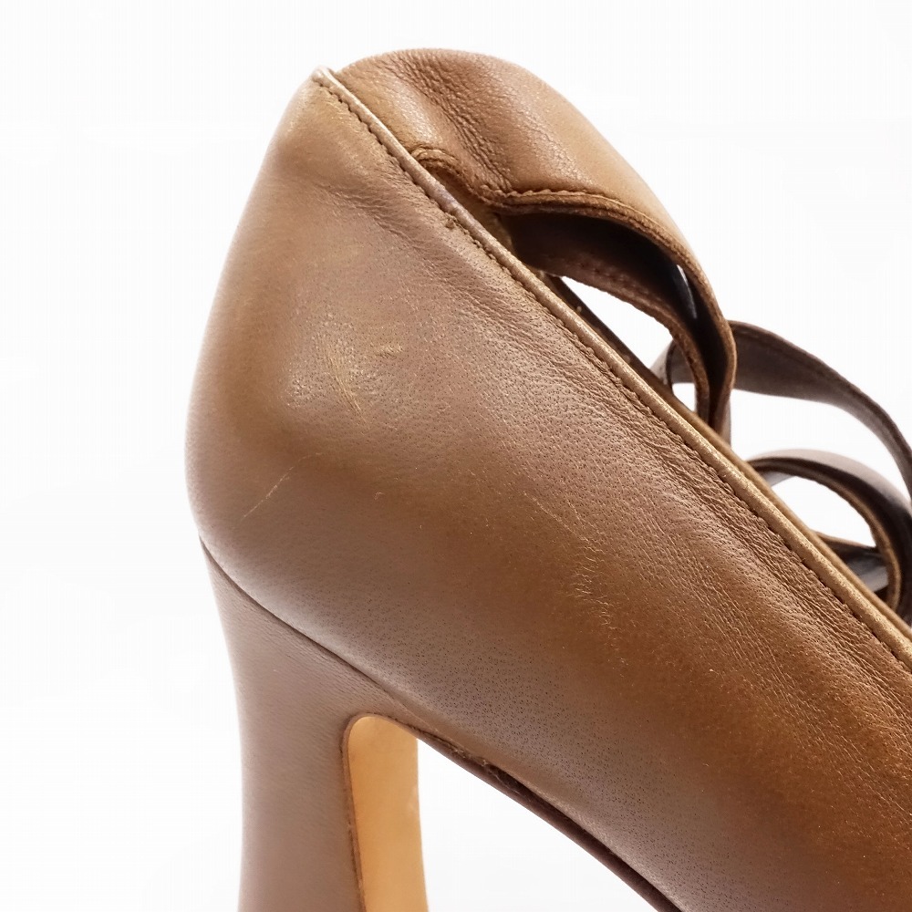 【MARYAM NASSIR ZADEH マリアムナシールザデー レザー パンプス ハイヒール リボン ベルト 36 23cm ブラウン 茶色 レディース】 | |