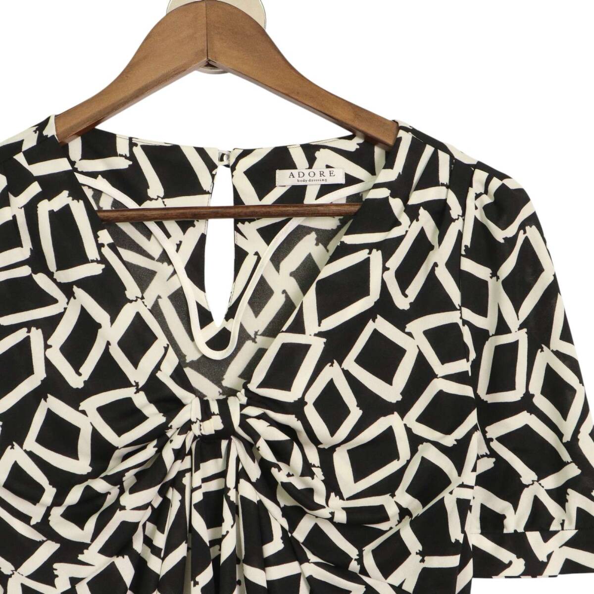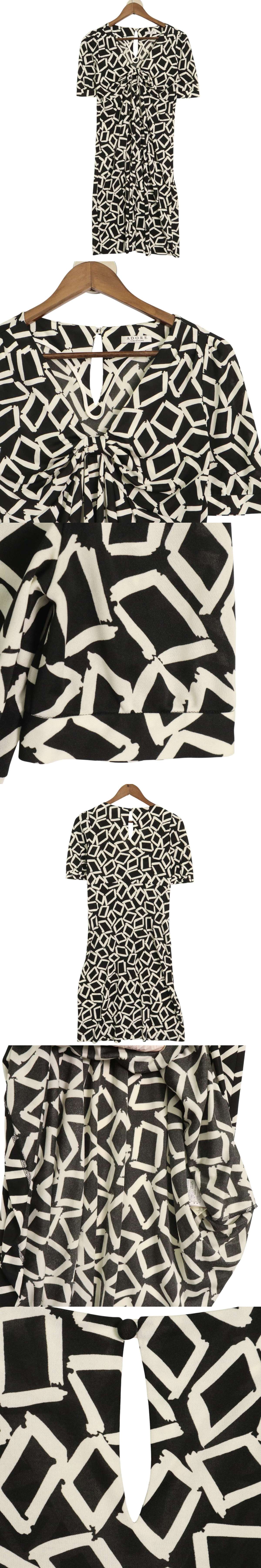 ADORE アドーア 春夏★ 幾何学模様 抽象的 ドレス 半袖 ミディ丈 ワンピース Sz.38 レディース