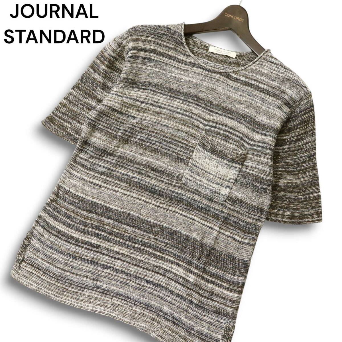 JOURNAL STANDARD ジャーナルスタンダード 麻 リネン★ ニット ポケット 杢調ボーダー 半袖 Tシャツ カットソー Sz.M メンズ