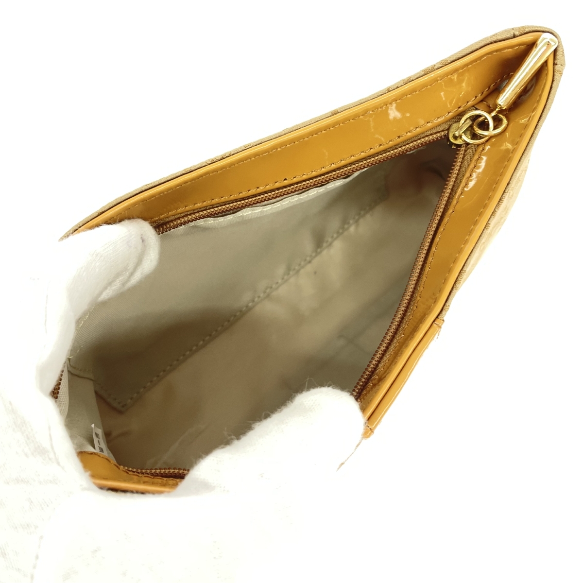 【外側】ポーチ底角汚れ、底部変色有り- 【内側】- ※スレ傷や汚れがある場合はその一部分のみ撮影を行っております。画像に写っていない箇所にも同じようなスレ傷や汚れがある場合がございます。 |