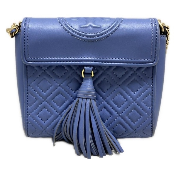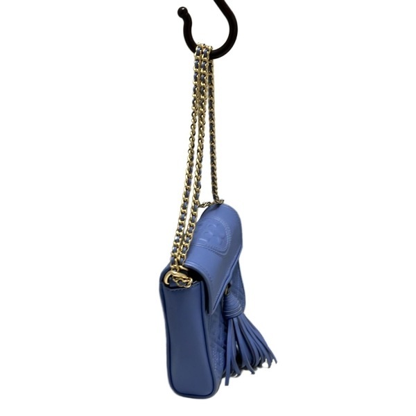 トリーバーチ TORY BURCH ショルダーバッグ - レザー ブルー キルティング/タッセル/チェーンショルダー/斜めがけ/ミニバッグ バッグ