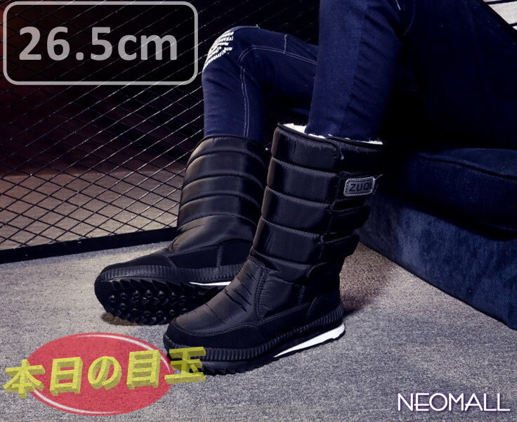 メンズ スノーシューズ 【866】 26.5cm ブラック ムートンブーツ スニーカー ウィンターブーツ 裏起毛 防水 防寒 防滑 冬用靴 綿靴