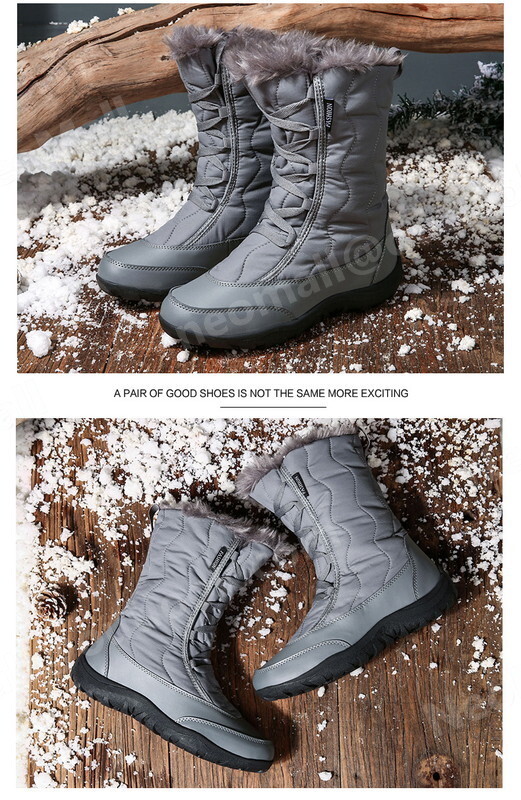 レディース スノーシューズ 【970】 グレー 23.5cm ムートンブーツ スニーカー ウィンターブーツ 裏起毛 防水 防寒 防滑 冬用靴 綿靴