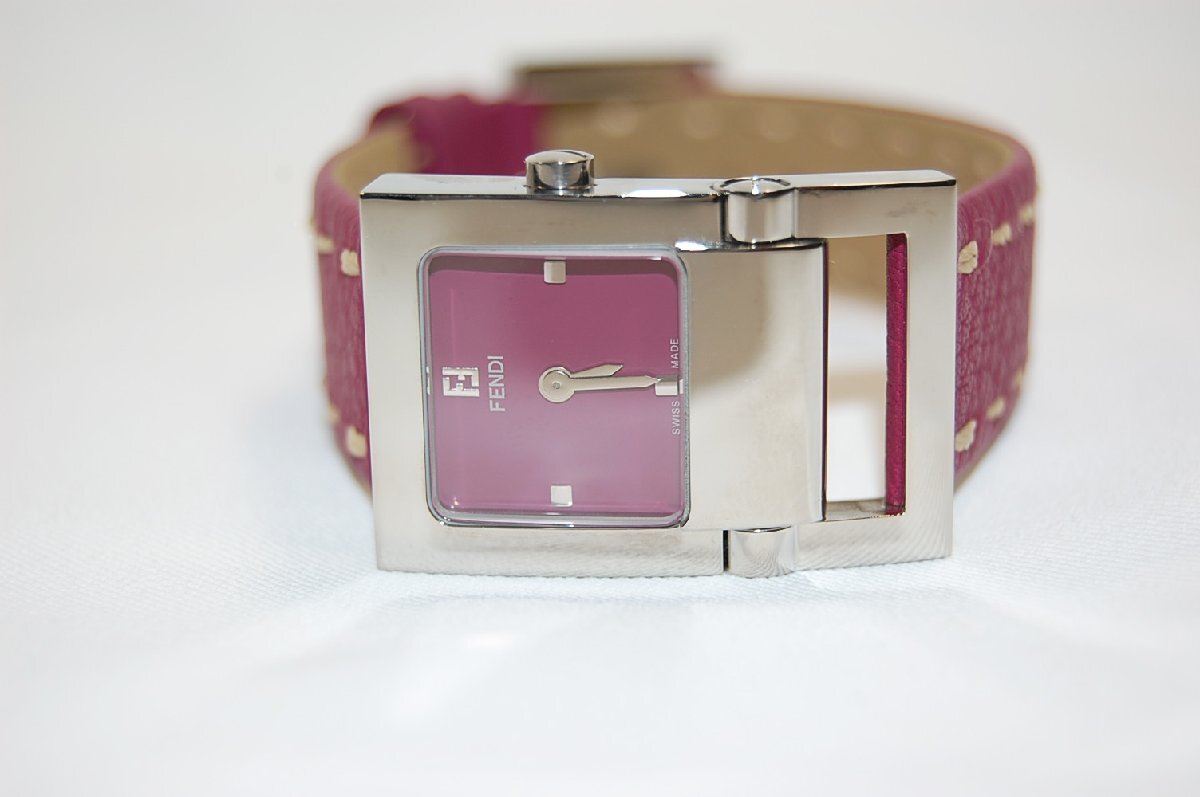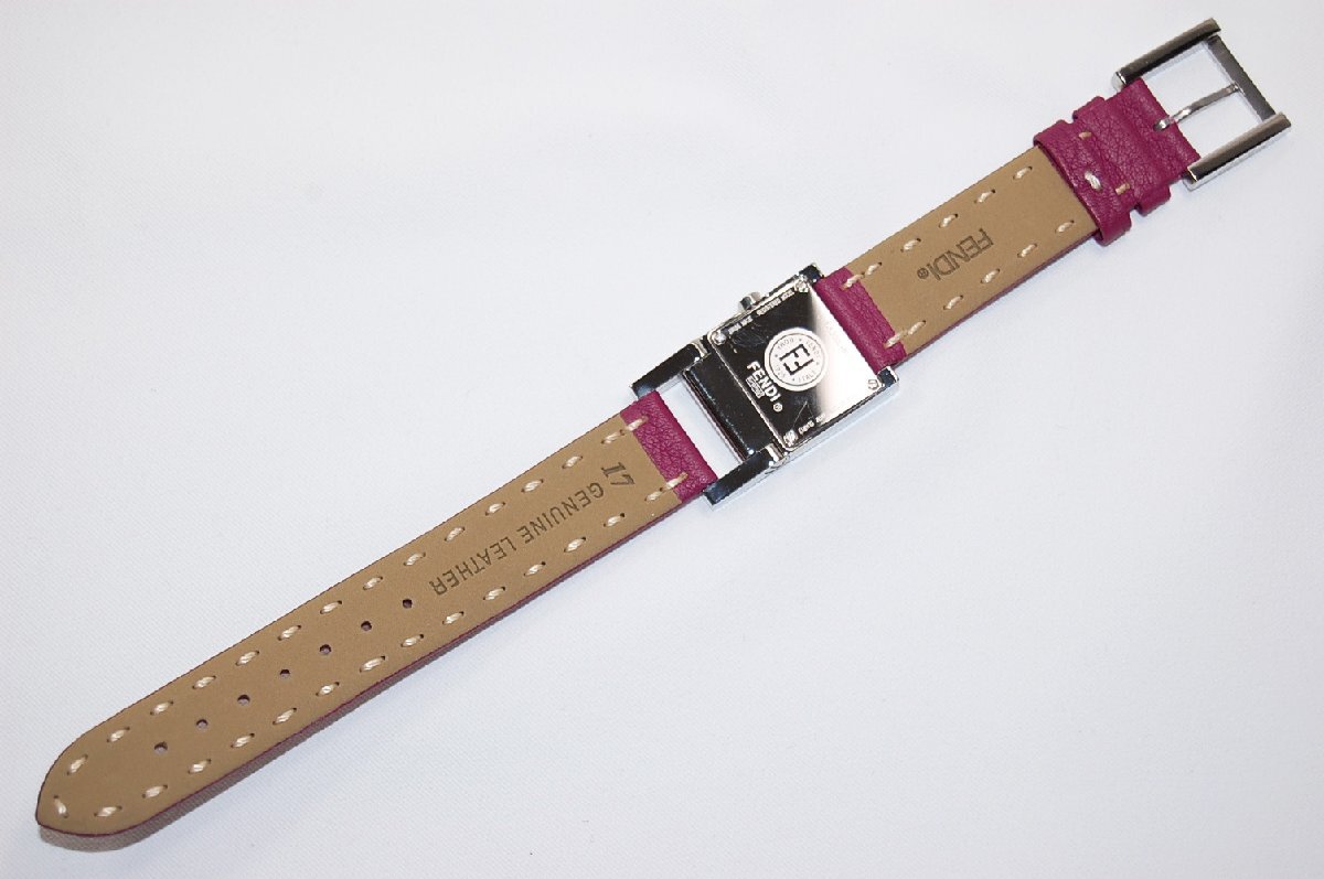 【商品名】フェンディ FENDI 5200L パープル文字盤 ワイルドステッチベルト クォーツ レディス腕時計 【素材】SSxレザー 【サイズ】フェイス約W23mmxH34mm(リューズは除く)。腕回り約14cm~19cm。ベルト幅約17mm 【色】パープル文字盤。革ベルト・パープルxベージュ 【商品ランク】中古SA 【付属品】無し 【備考】全体的に使用感は無く未使用品に近い感じです。ステンレス表面に若干の小傷あり。ガラス表面に目立った傷や欠けはございません。革ベルトに使用形跡はございません。クォーツ。1か月保証付き。